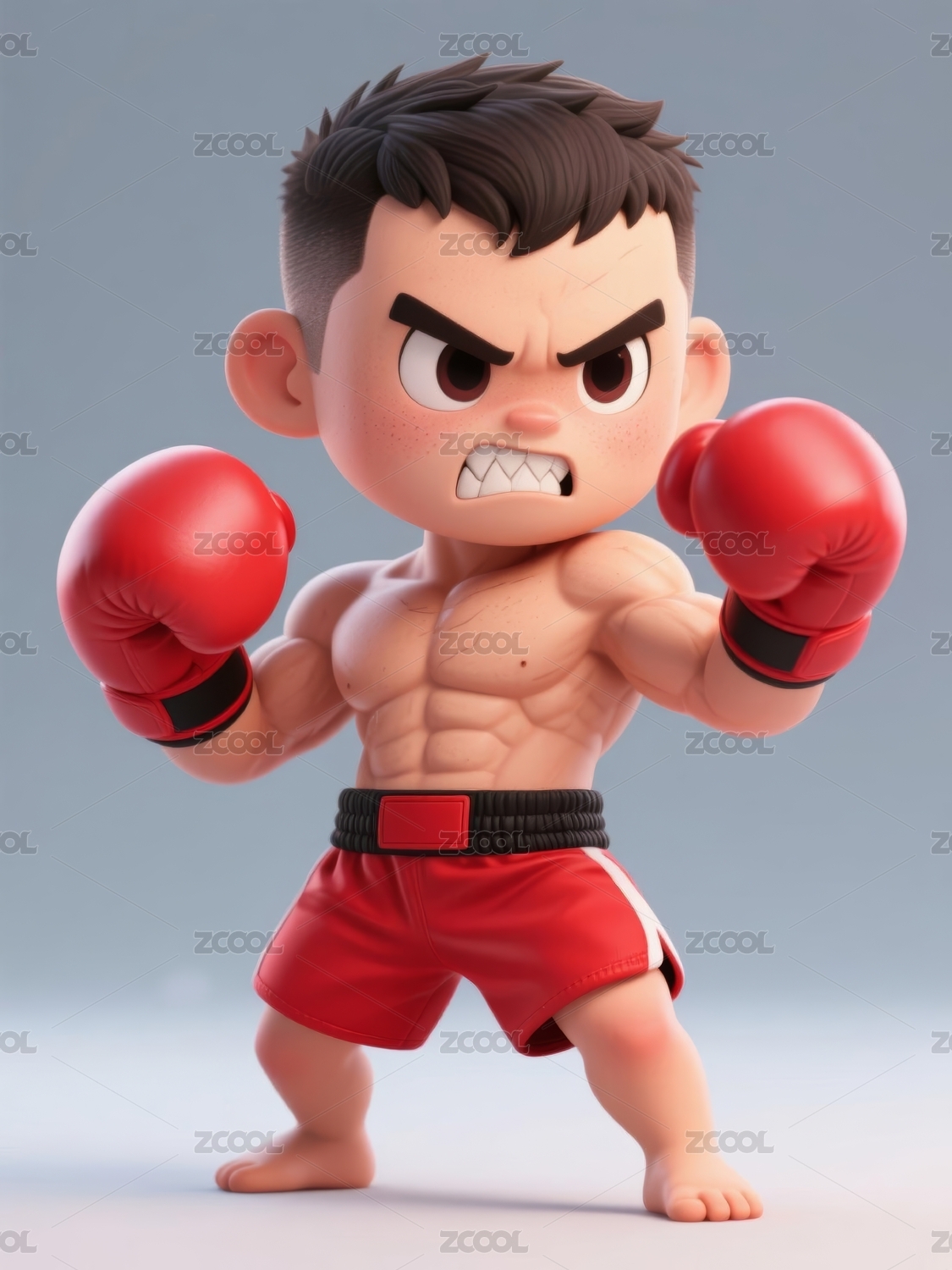 夸张带拳击手套的男孩盲盒手办3D卡通插画