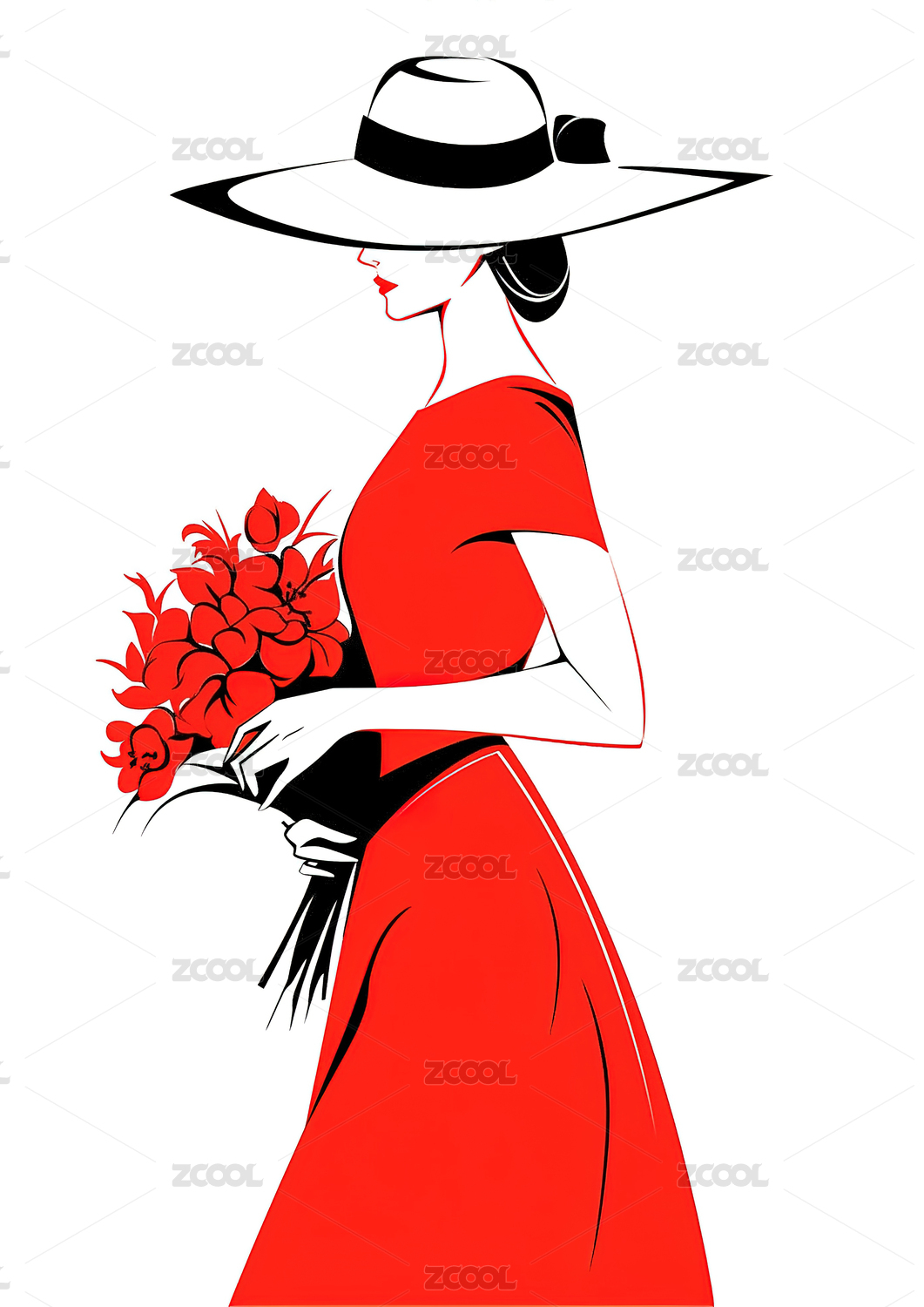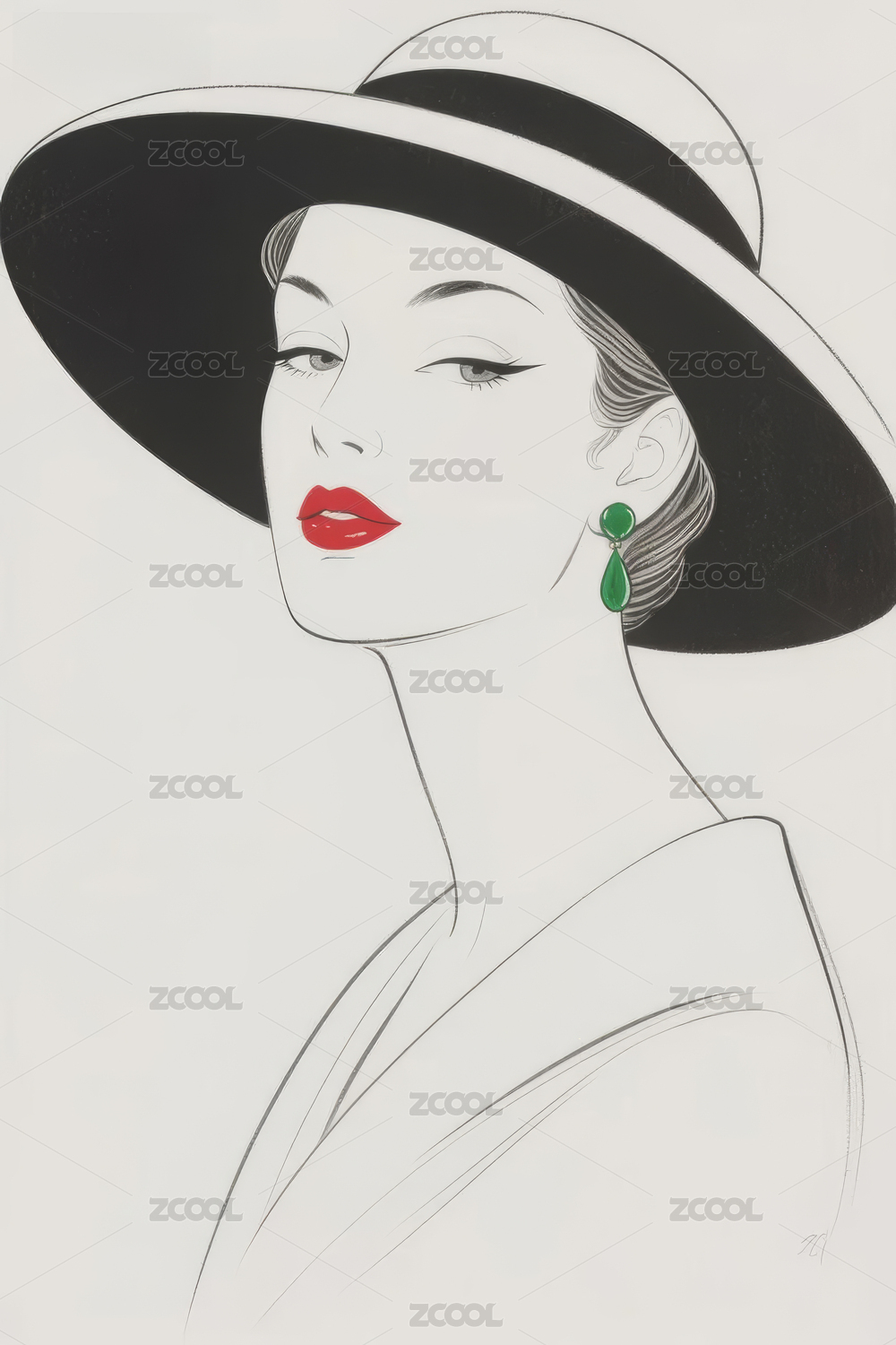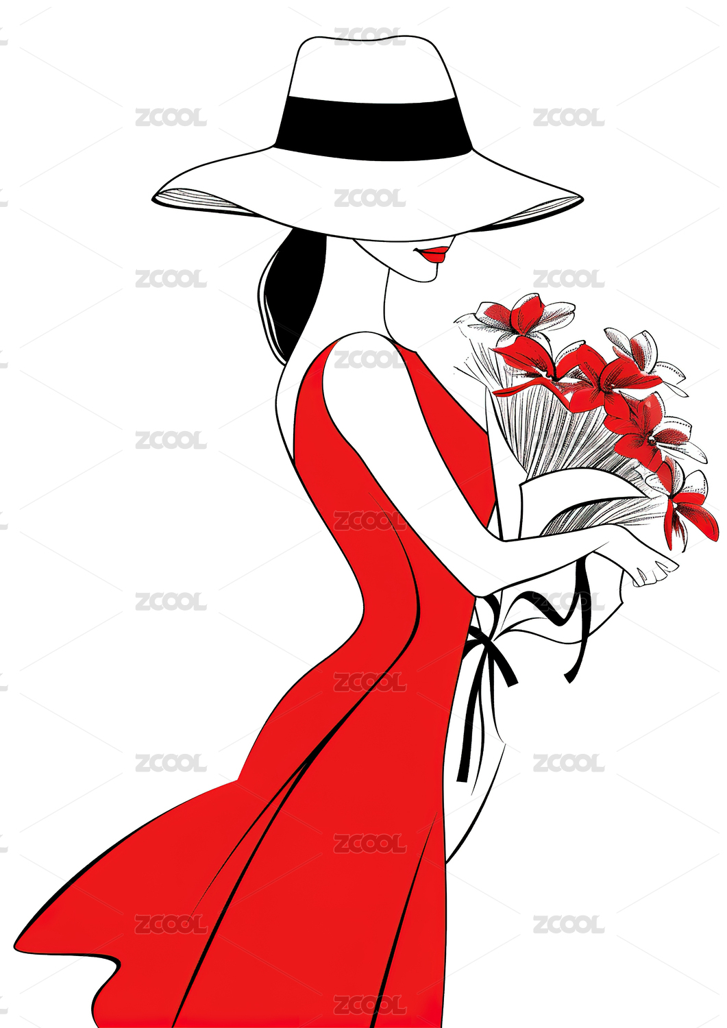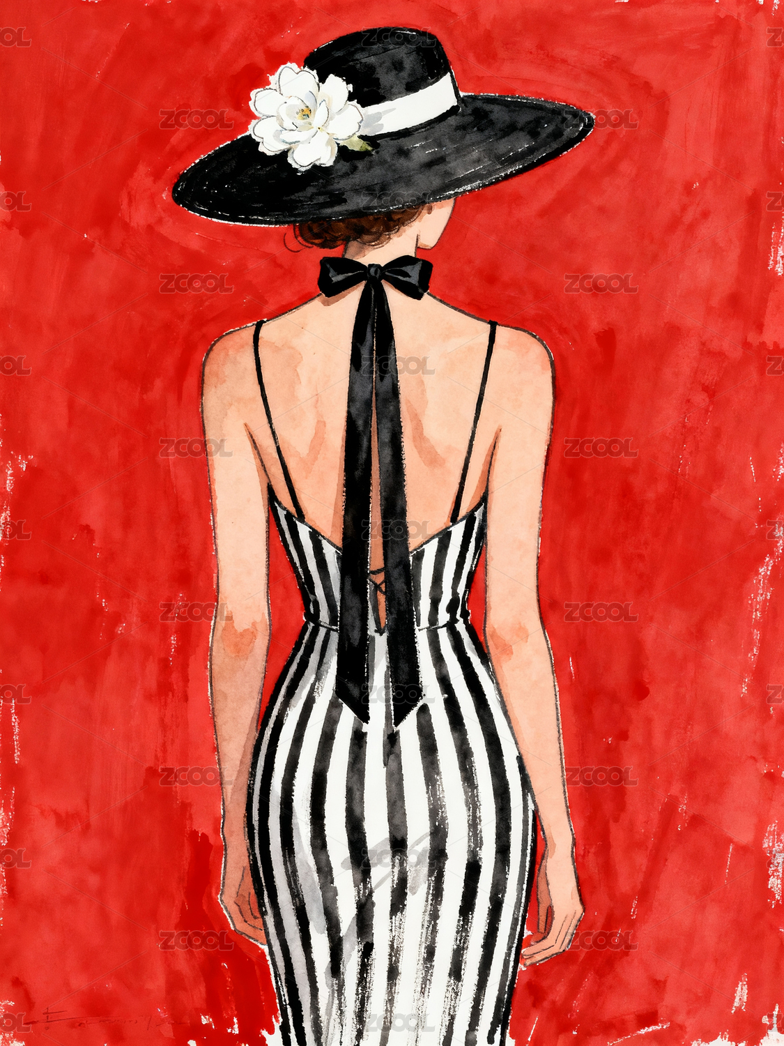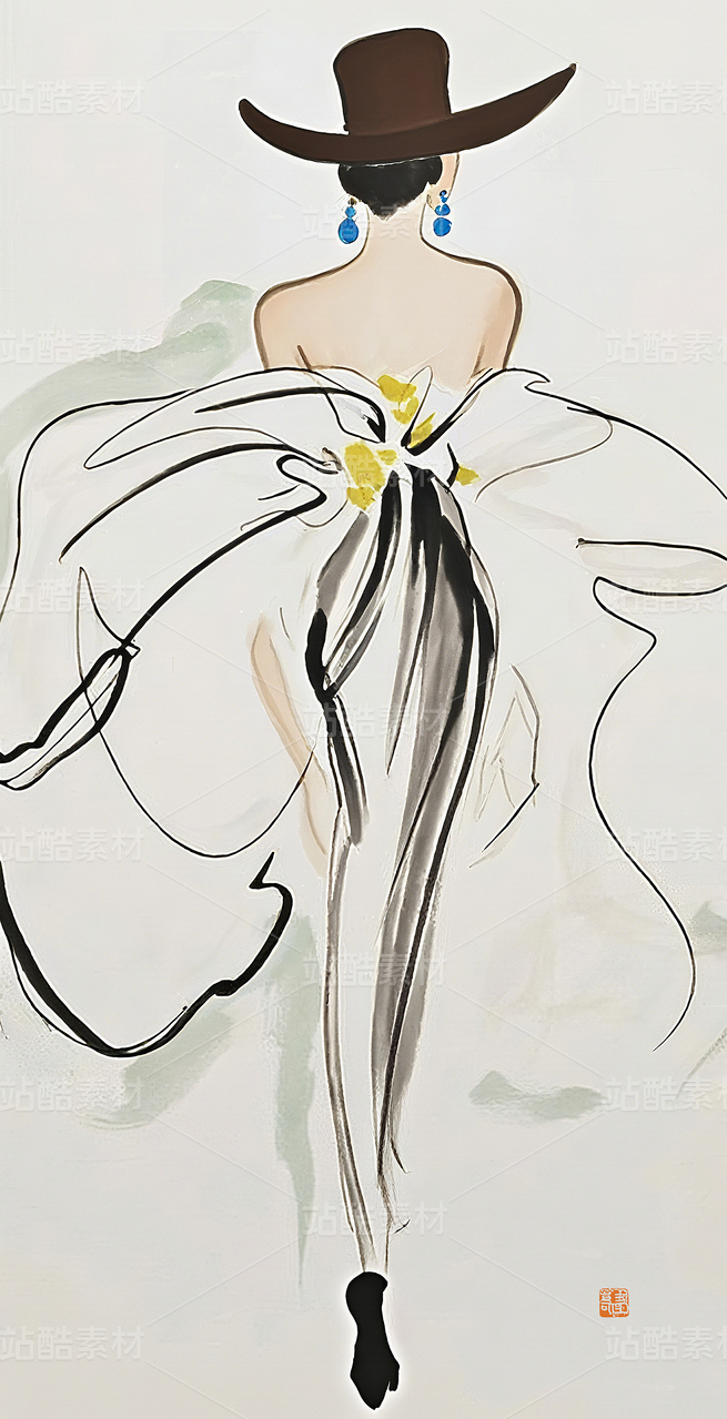 时尚服装画水墨人物装饰画服装杂志封面文旅海报宣传画