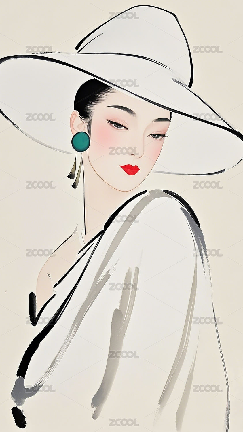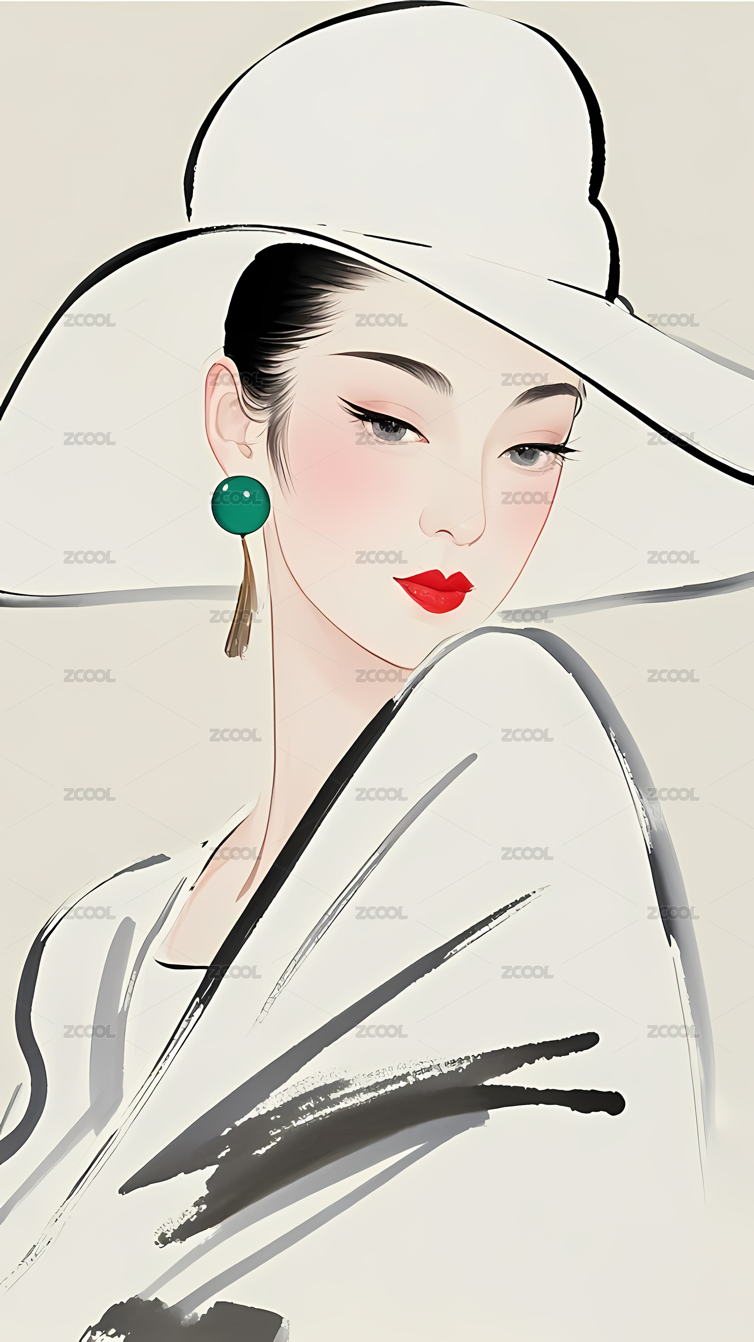 水墨人物装饰画服装杂志封面文旅海报宣传画时尚服装画