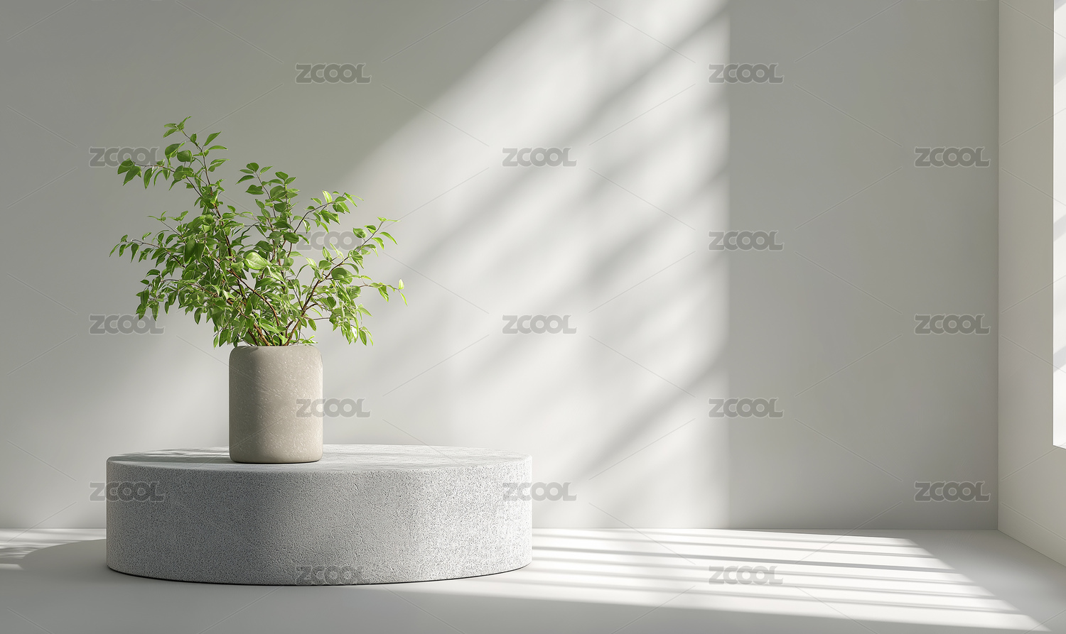 简约空间绿植花瓶的 3D 场景设计素材