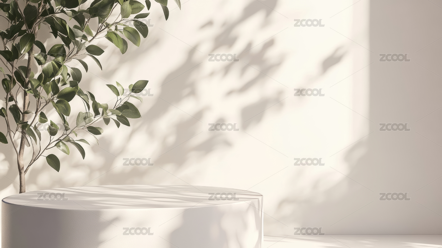 简约风格的白色圆桌与绿植
