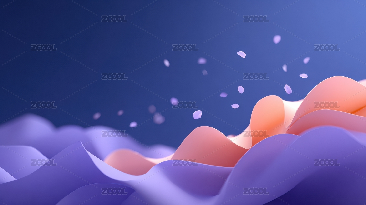 梦幻紫色波浪与花瓣的艺术插画