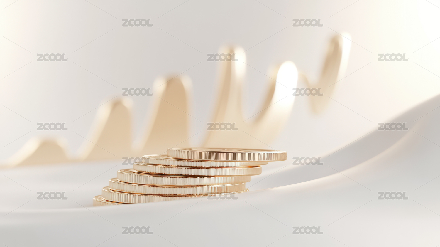 金币堆叠在曲线上的艺术构图