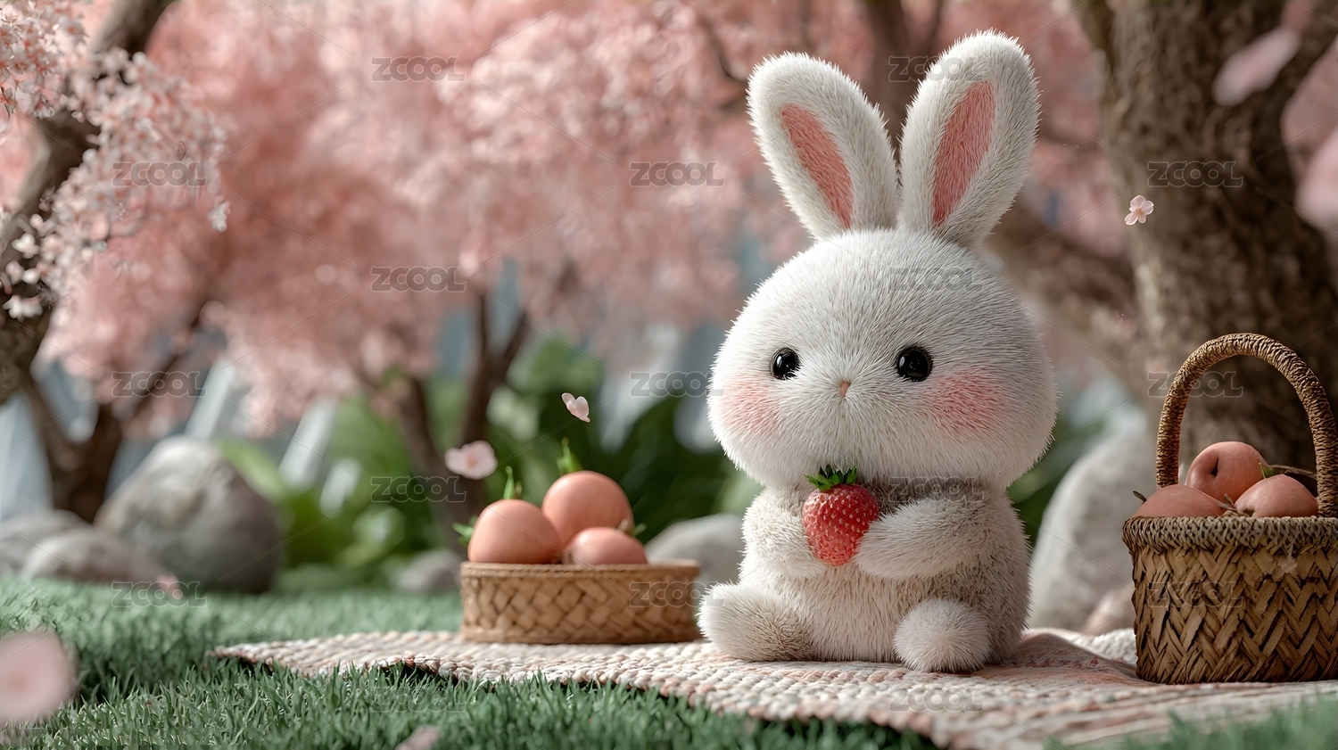 艺术,森林,自然,树木,可爱,动物,兔子,熊,狐狸,胡萝卜
