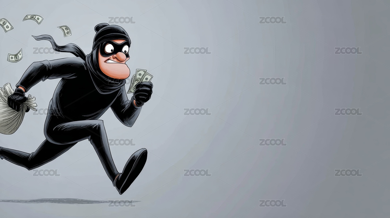 主视觉,场景,风格,卡通,冒险,财富,金币,盗贼,奔跑,偷
