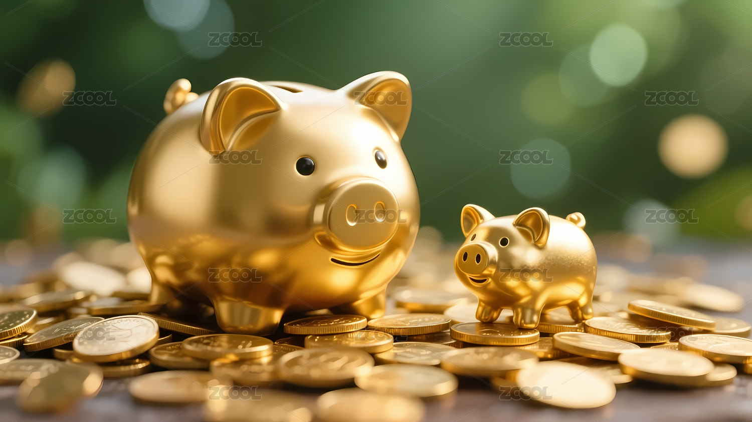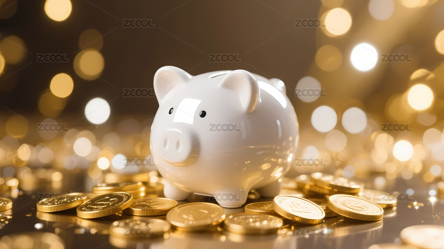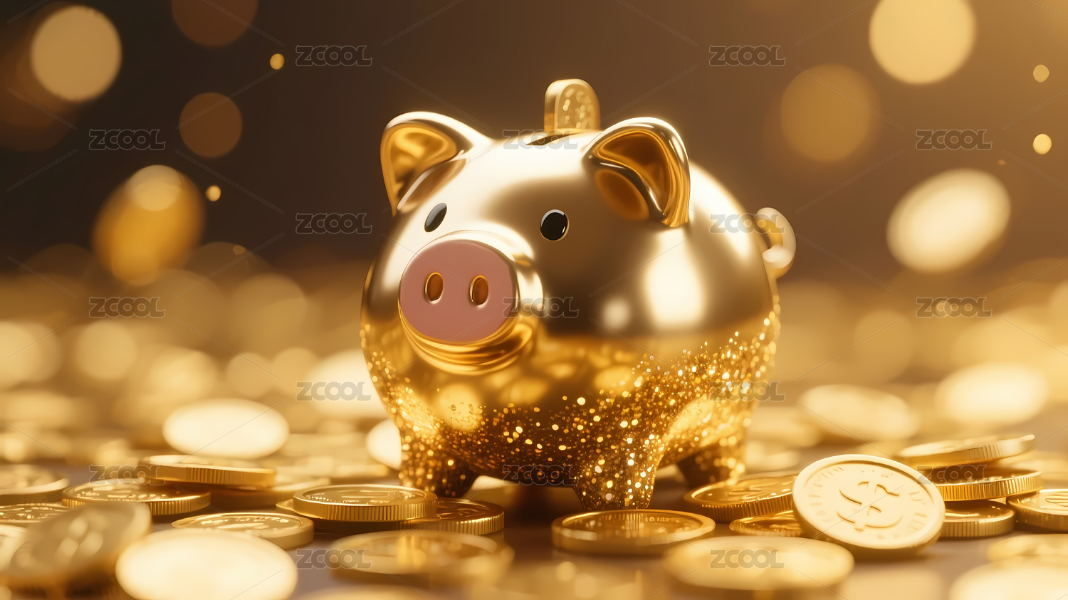 主体,模糊,光斑,装饰,金色,金属,硬币,财富,储蓄罐,散落