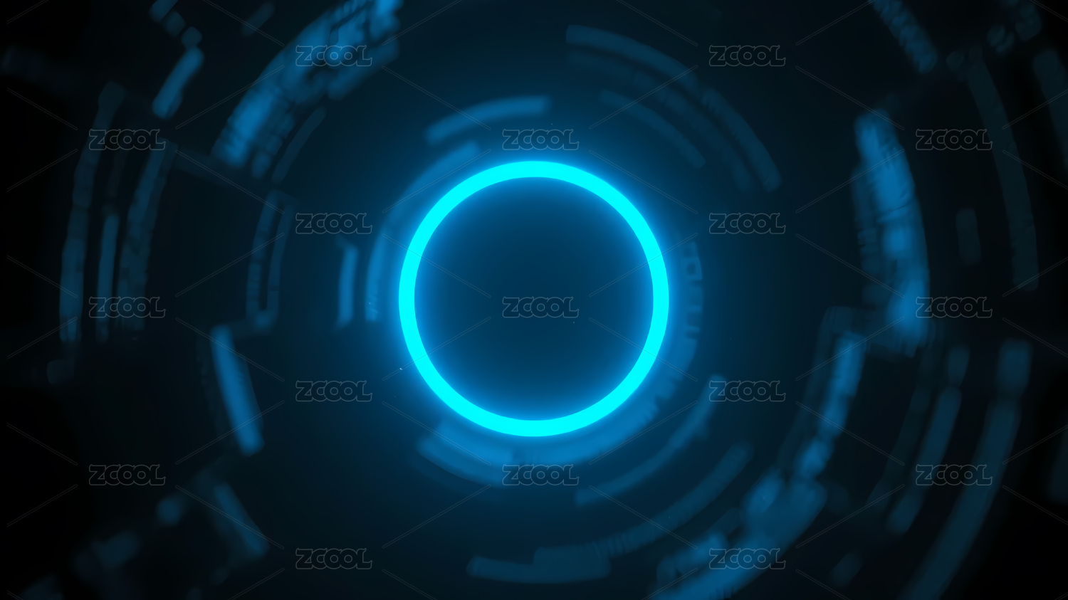 蓝色,未来,科技,发光,深色,线条,圆形,圆环,界面,点