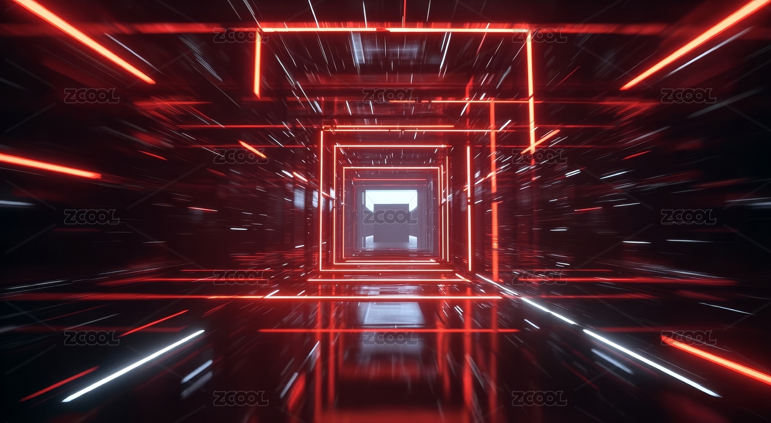 红色光带构成的未来隧道