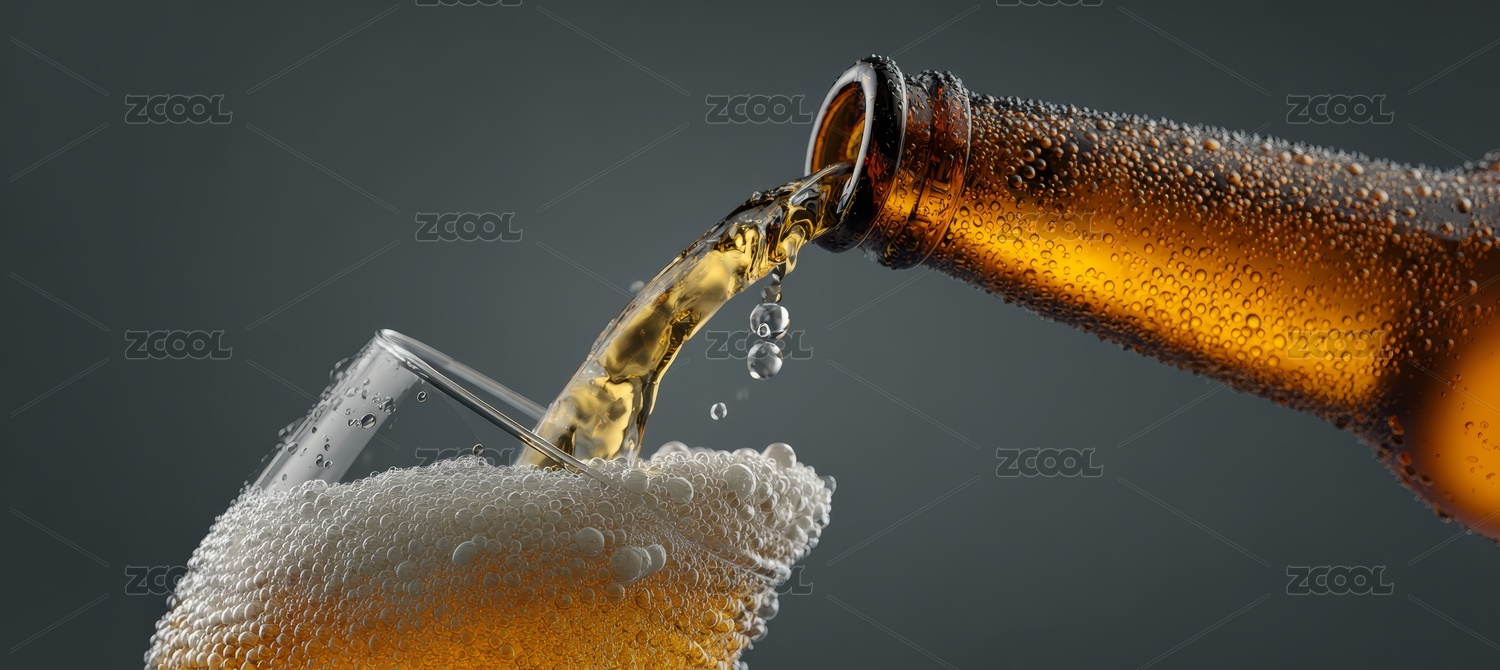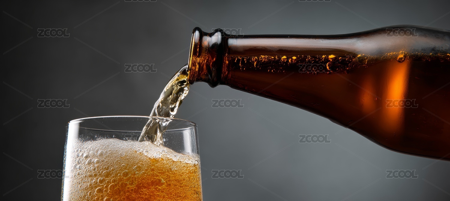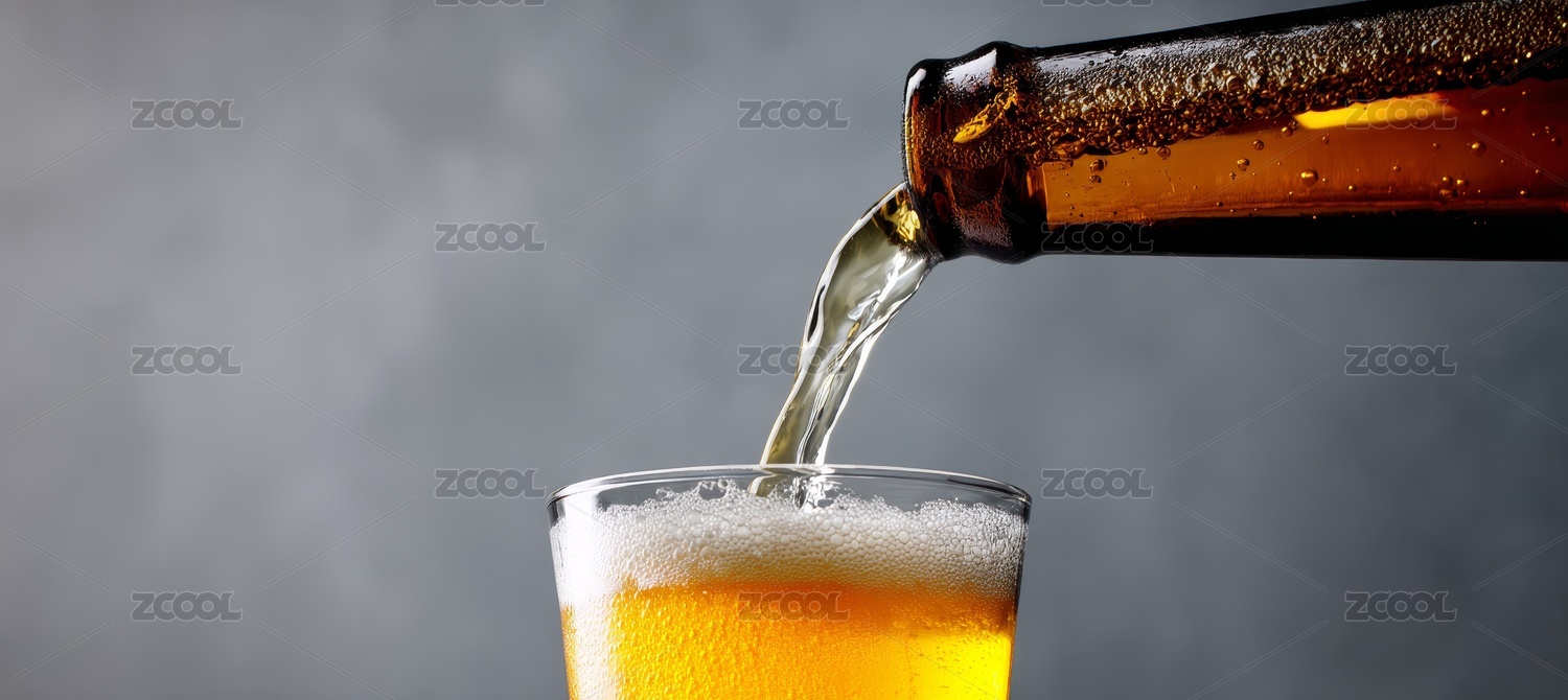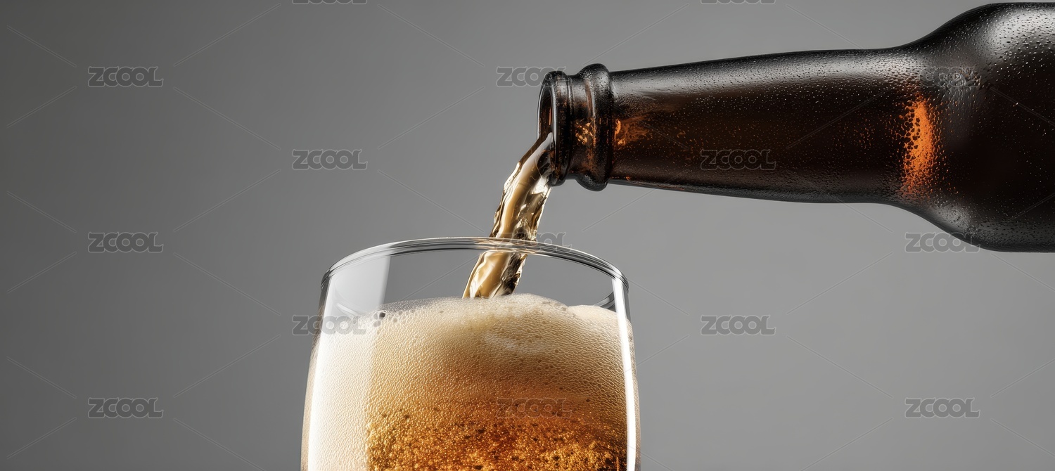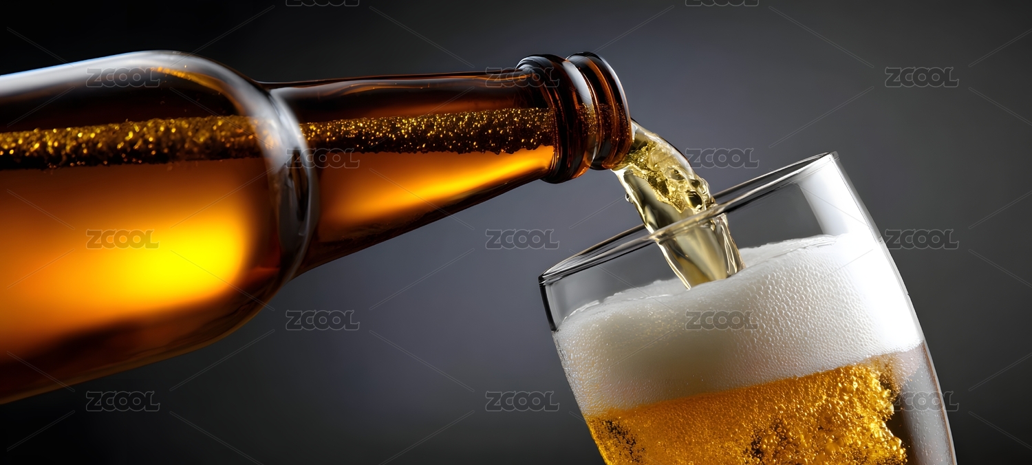 棕色啤酒瓶往玻璃杯中倒啤酒