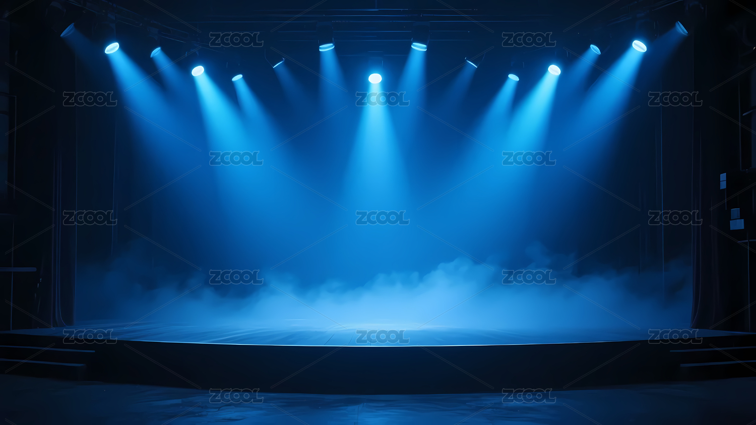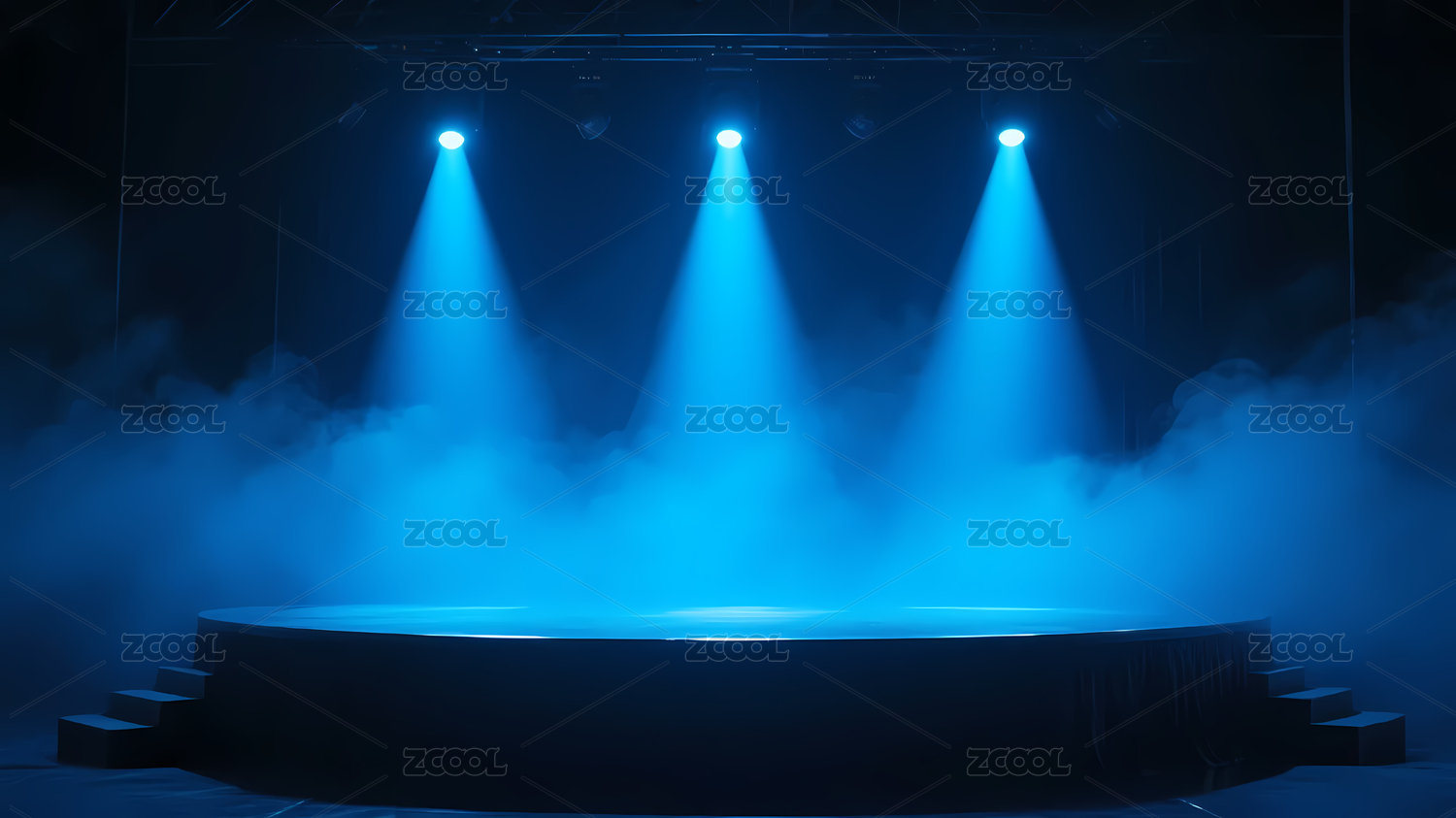 舞台,圆形,蓝色,灯光,冷色调,神秘,深色,聚光灯,烟雾,庄重