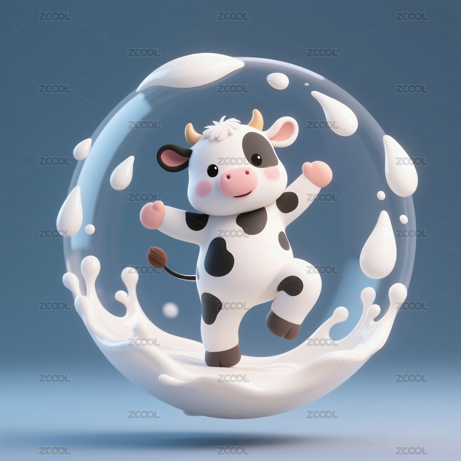 在牛奶里跳舞的奶牛宝宝动漫卡通形象