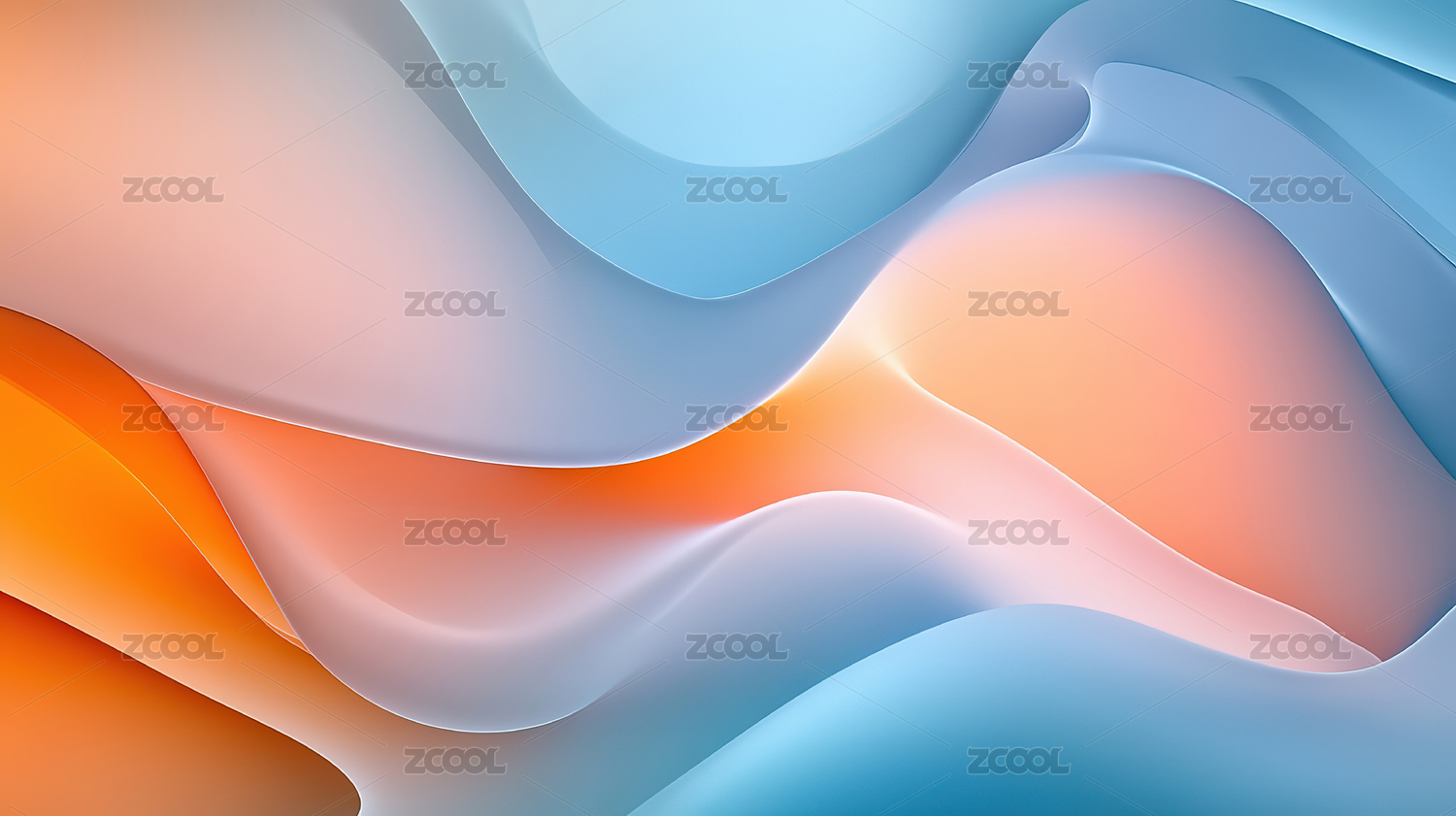 蓝橙渐变波浪线浅蓝背景