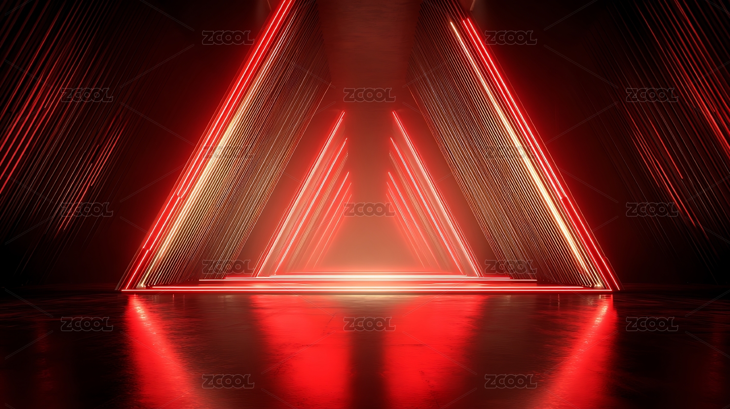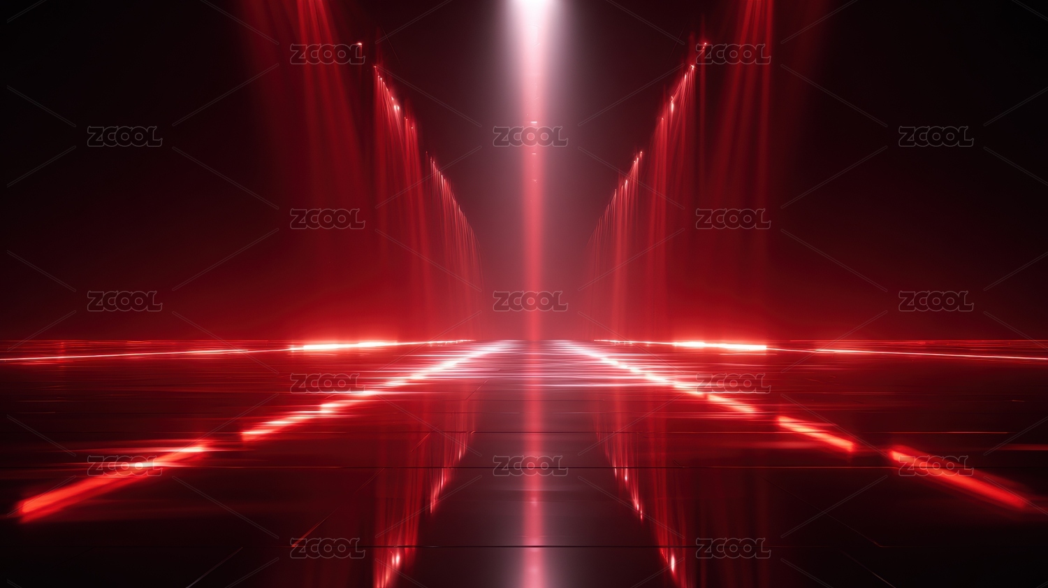 红色激光线条的对称舞台背景