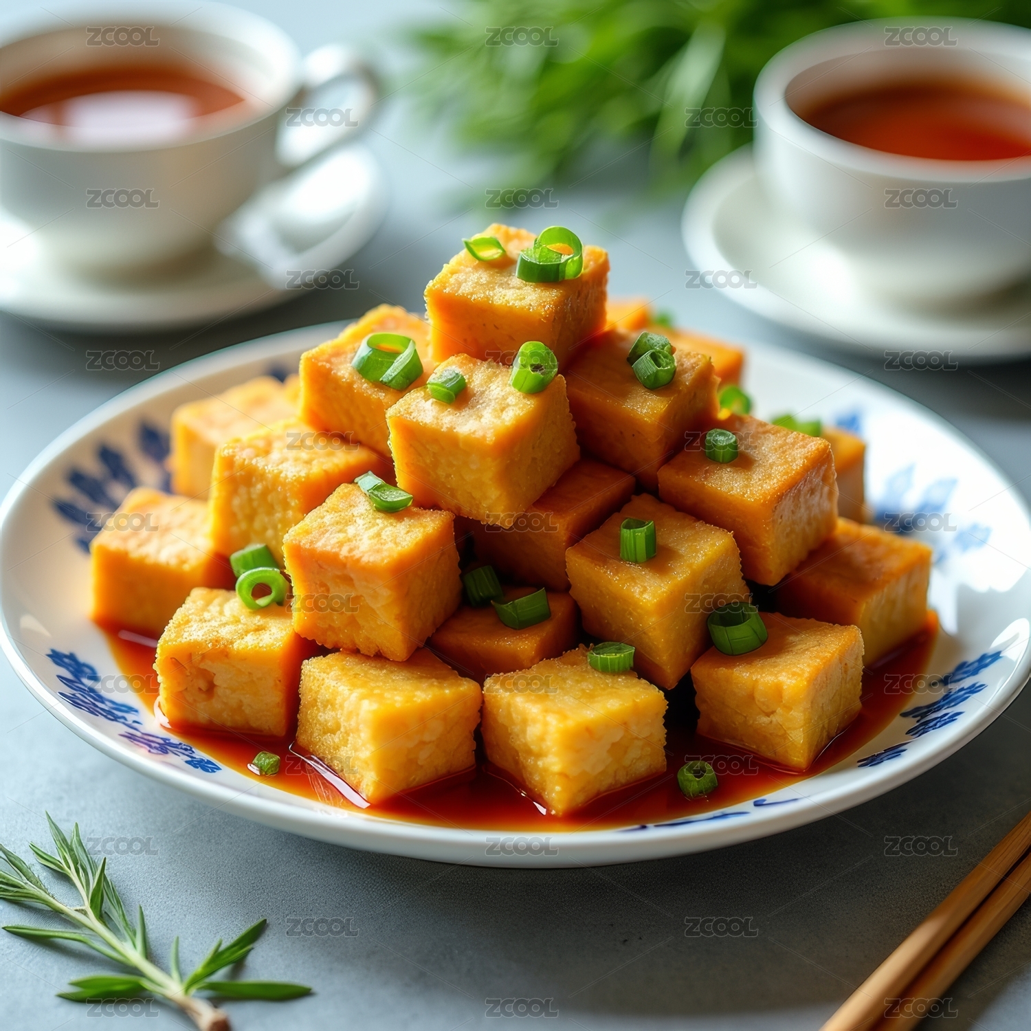 香煎豆腐,豆腐,美食,家常菜,中式菜肴,健康饮食,营养,餐桌,摆盘,青葱