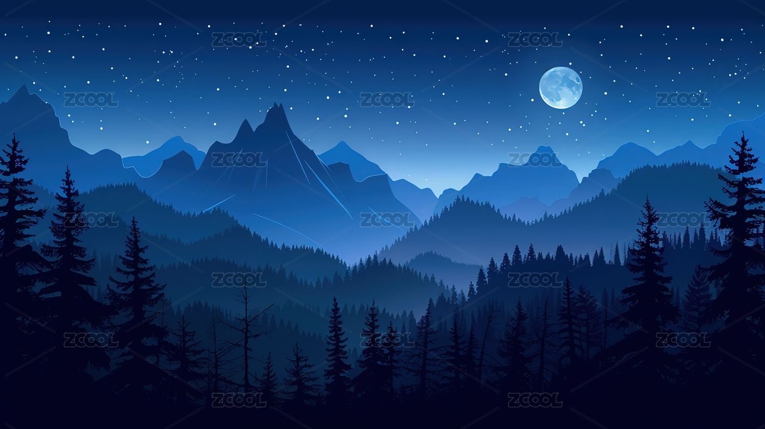森林, 自然, 绿色, 背景, 风景, 蓝色, 远方, 梦幻, 美丽, 夜晚