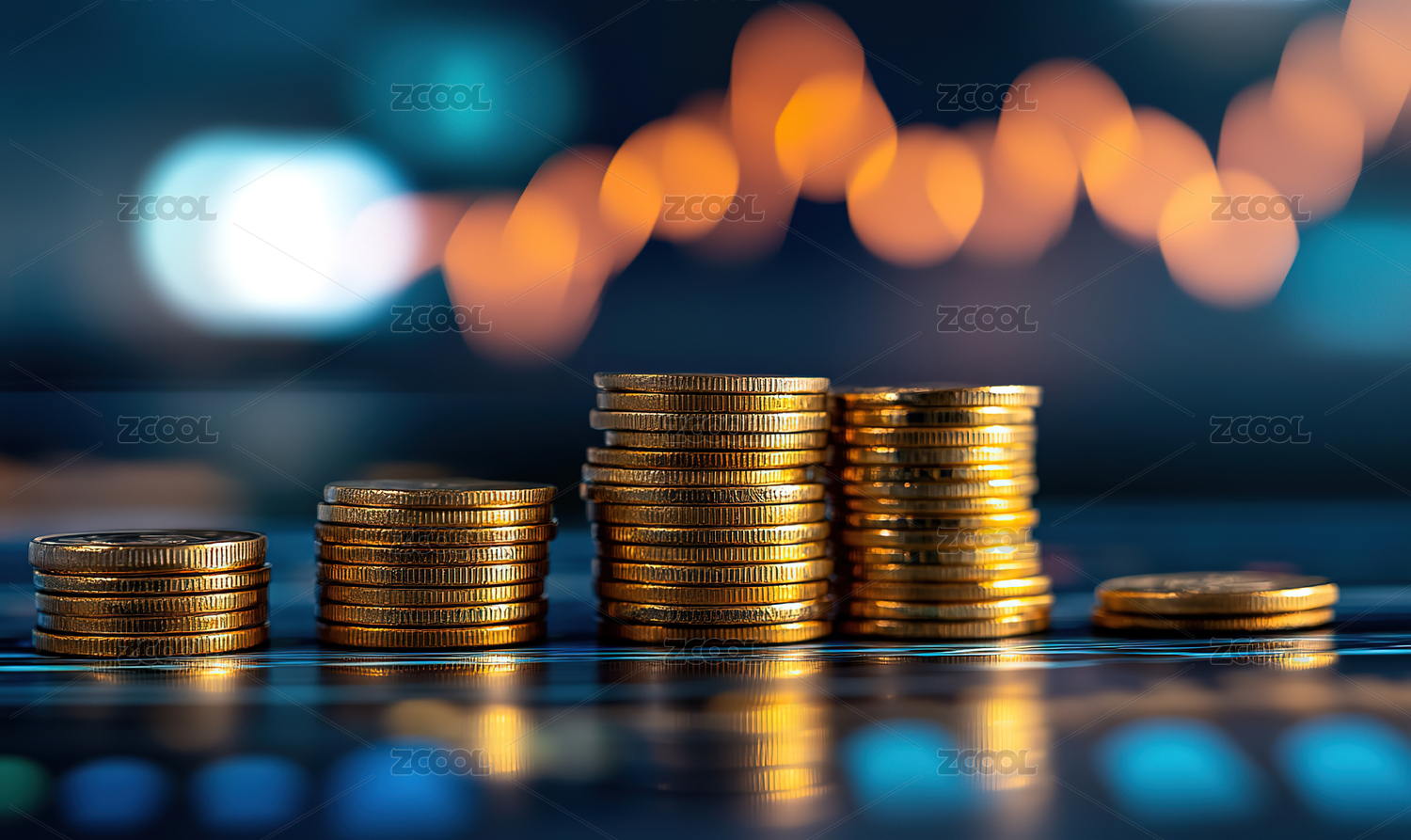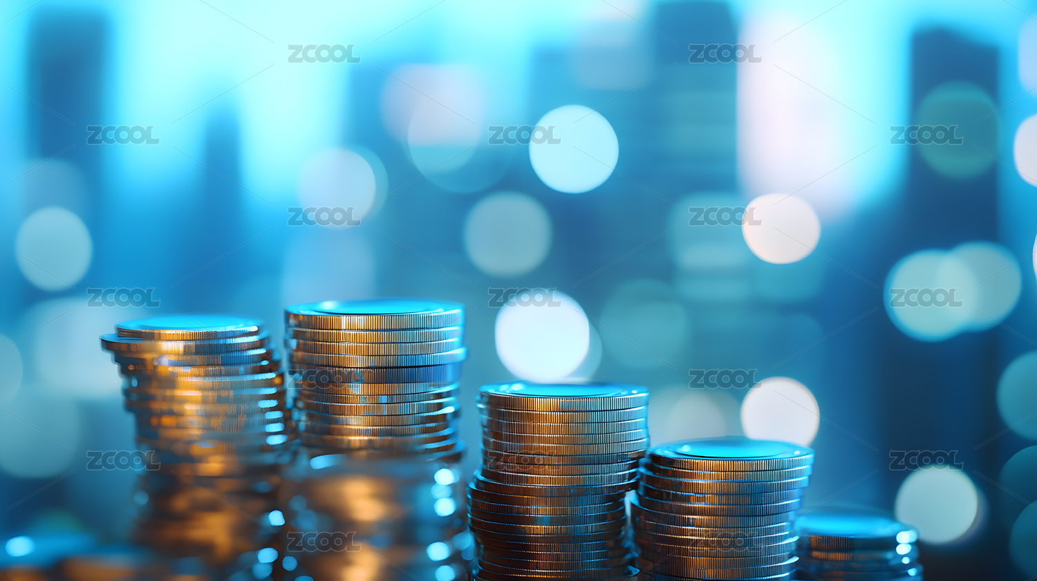 模糊,视觉,硬币,金色,主体,色彩,蓝色,光斑,排列,增长