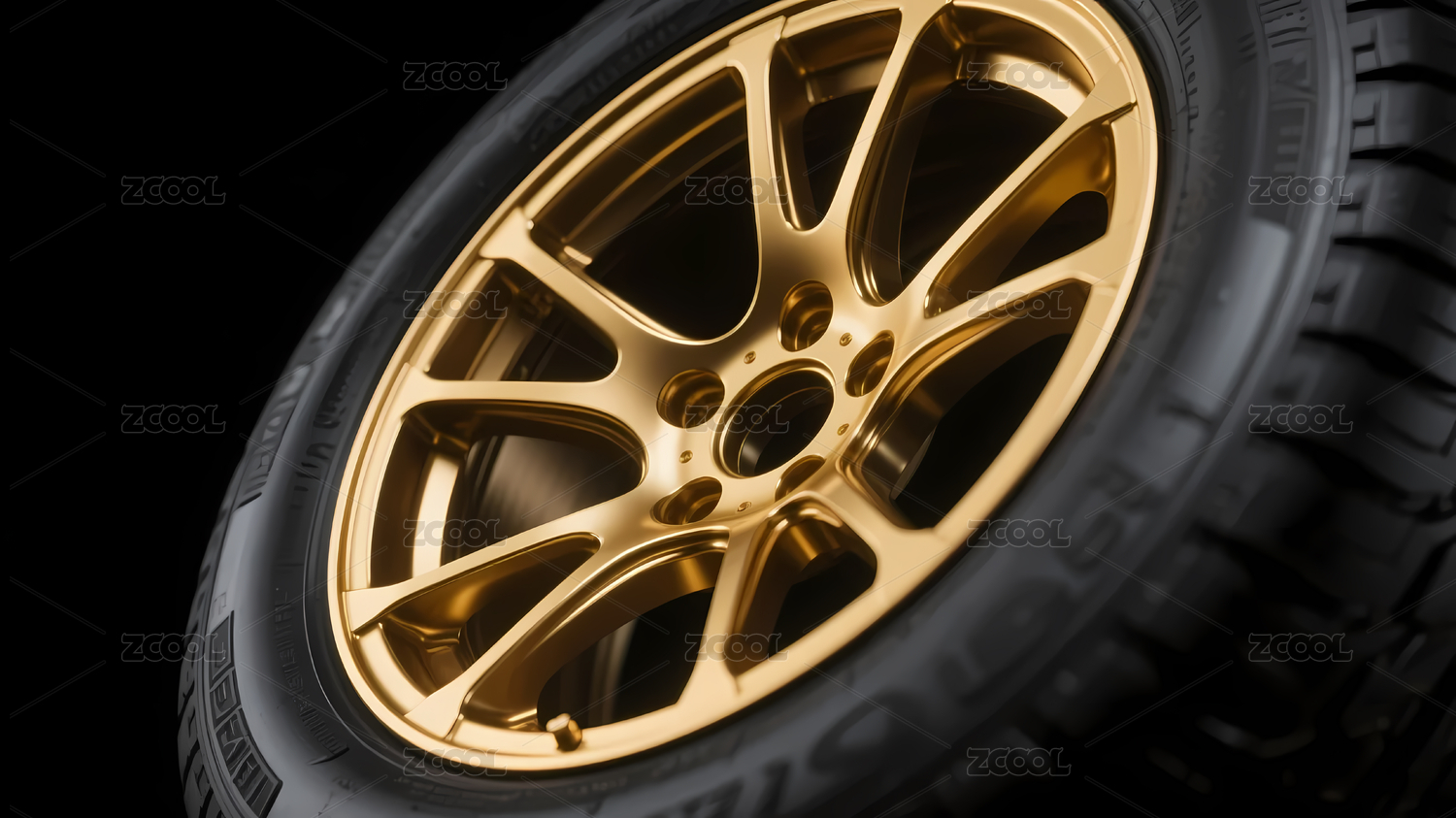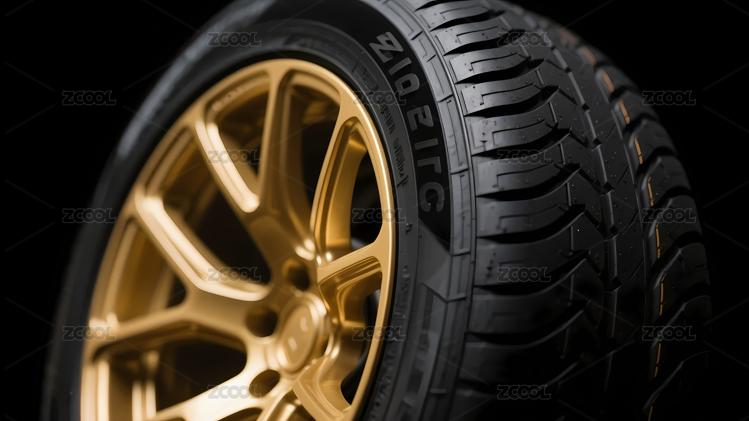 金色,主体,黑色,质感,轮毂,轮胎,细节,机械,车辆,部件