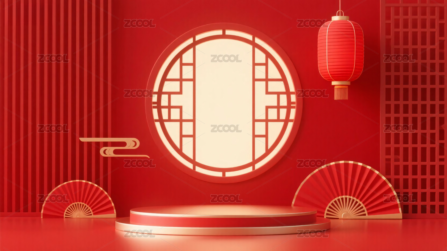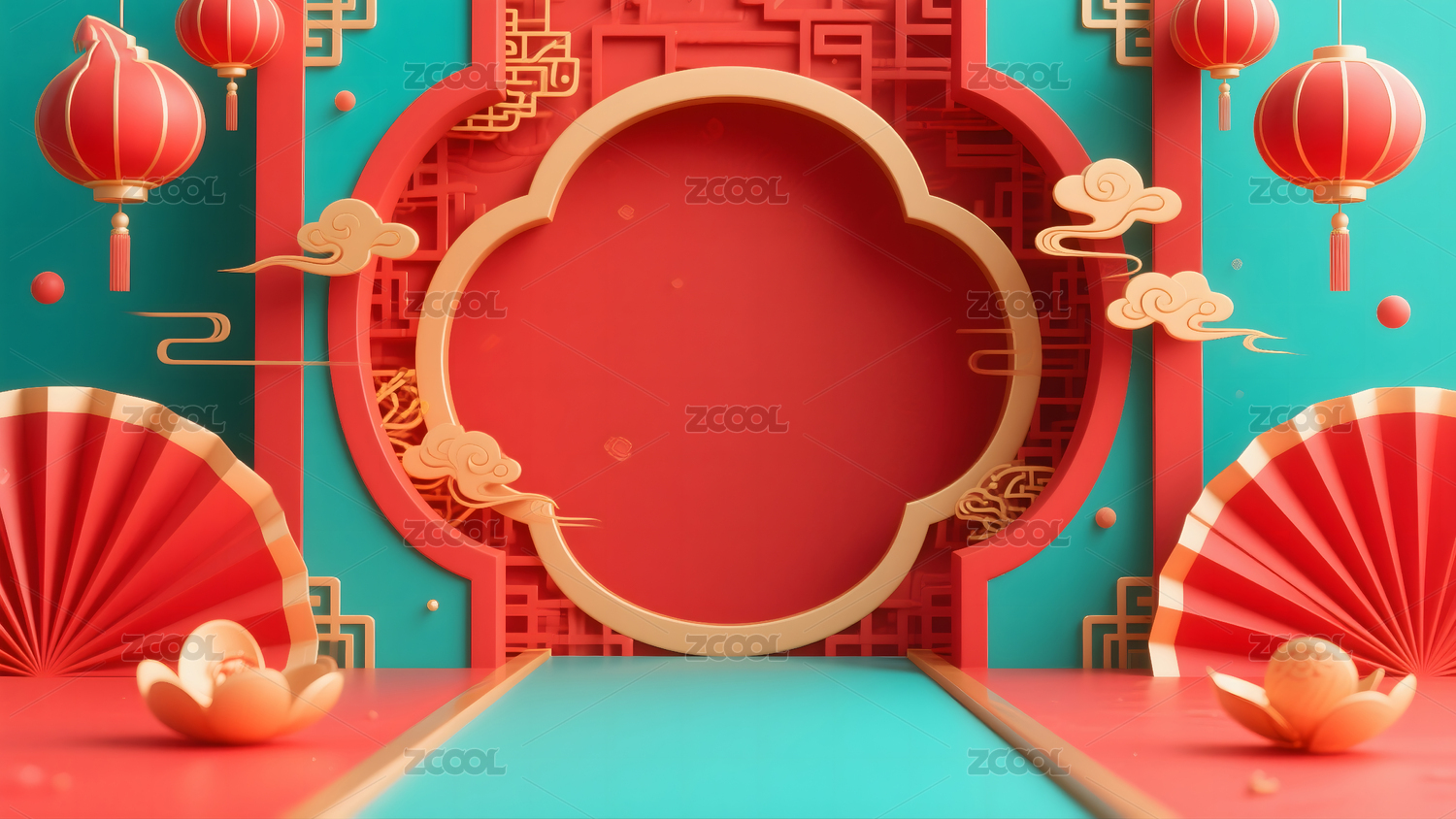 红色,金色,圆形,白色,云朵,装饰,讲台,窗格,灯笼,扇形