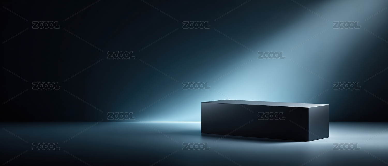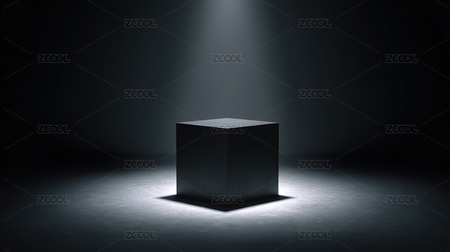 神秘光影中的黑色立方体