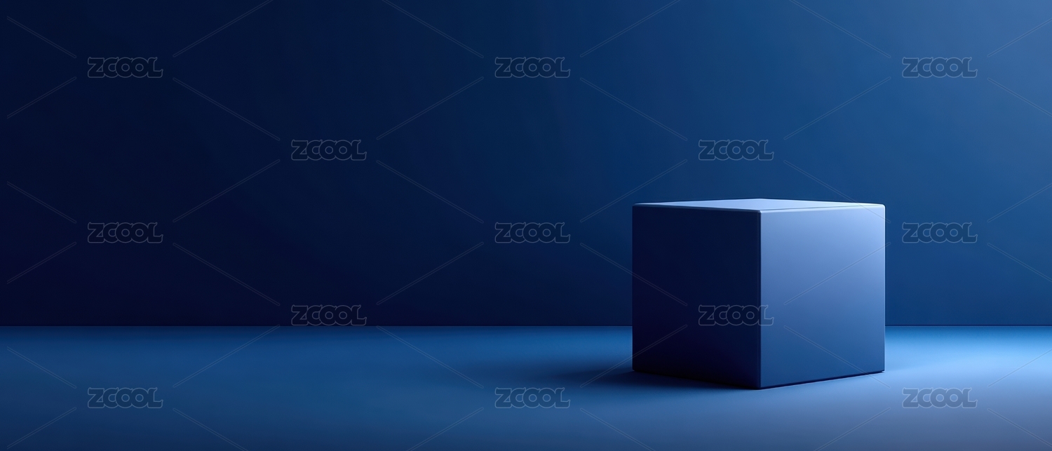 深蓝色背景下的几何立方体