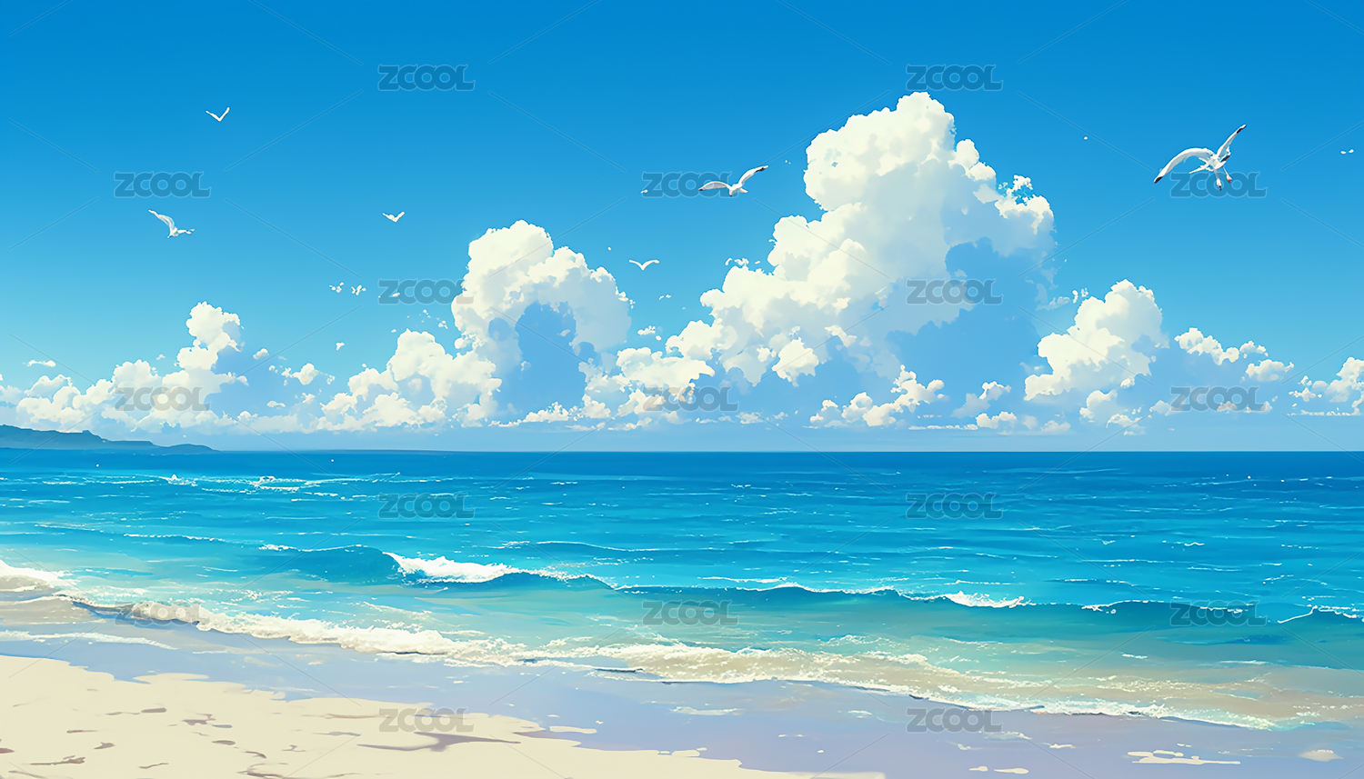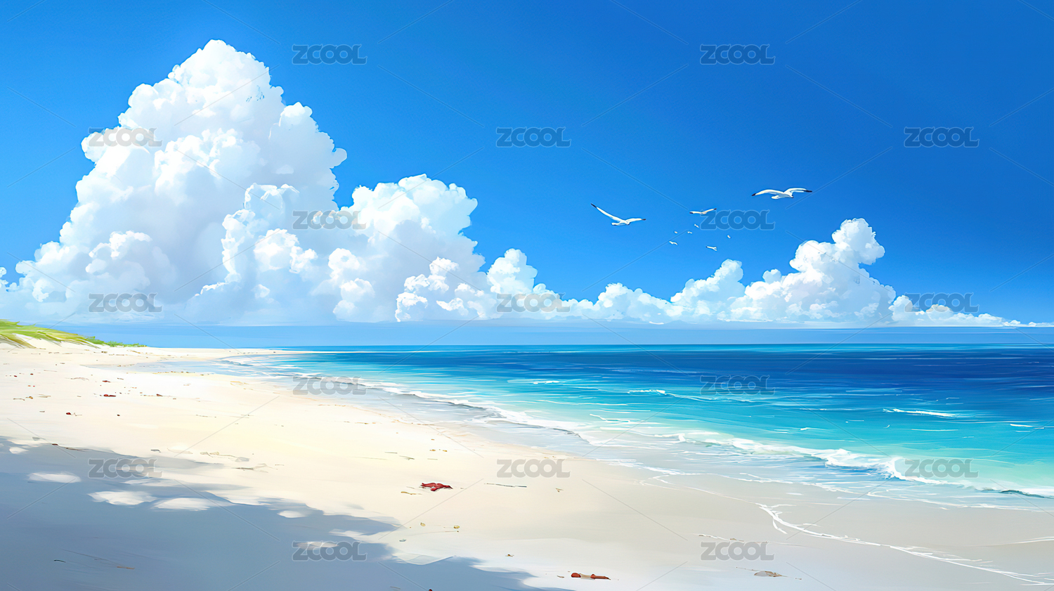 海滩,海浪,贝壳,沙滩,插画,清新,治愈,海洋,夏日,自然
