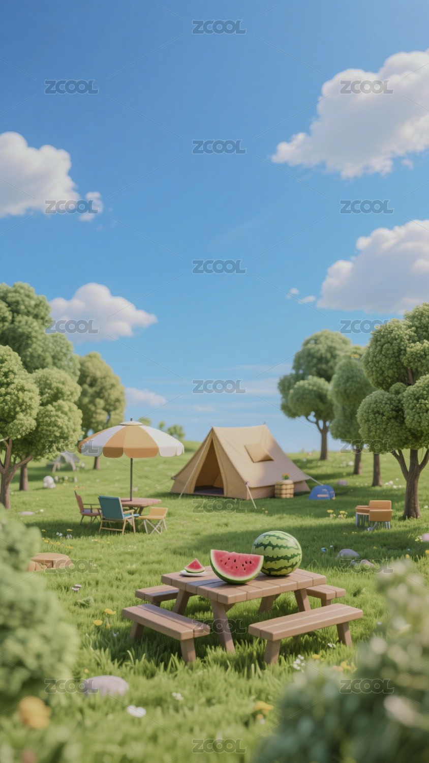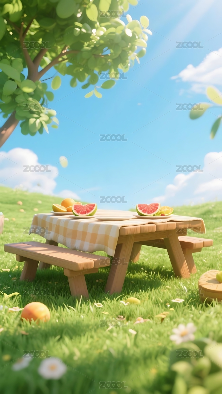 草地,野餐,水果,燕子,蓝天,阳光,自然,休闲,惬意,生活