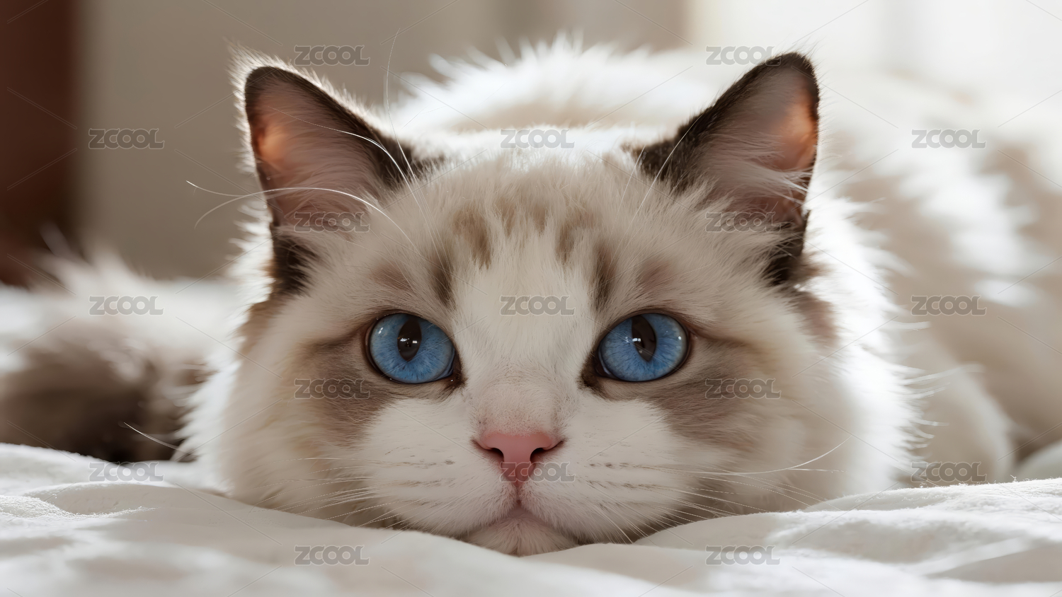 温暖,猫咪,毛色,柔软,可爱,休息,蓝眼,侧卧,放松,惬意