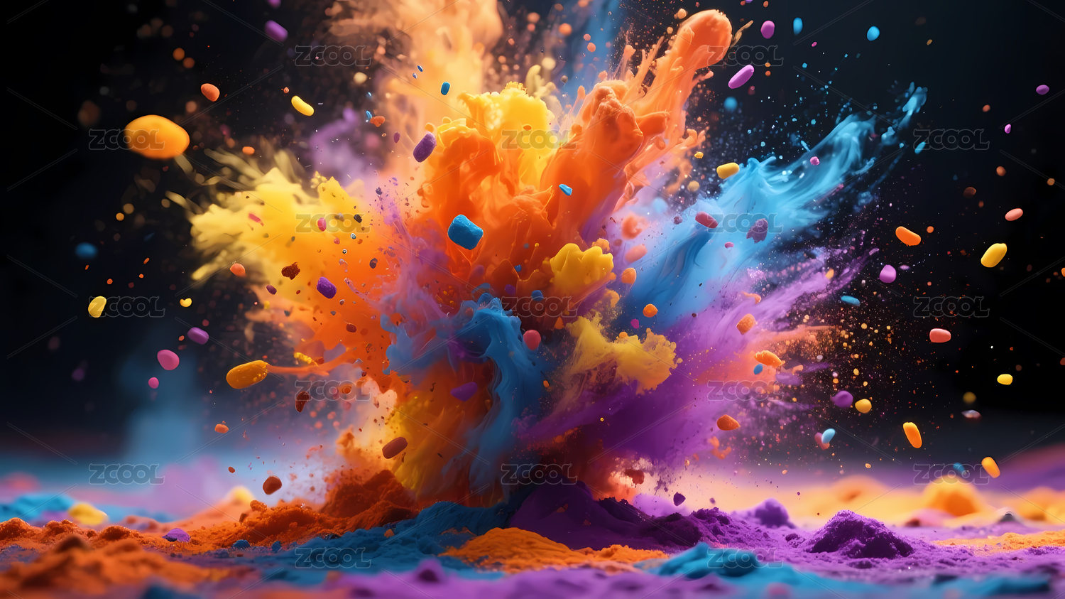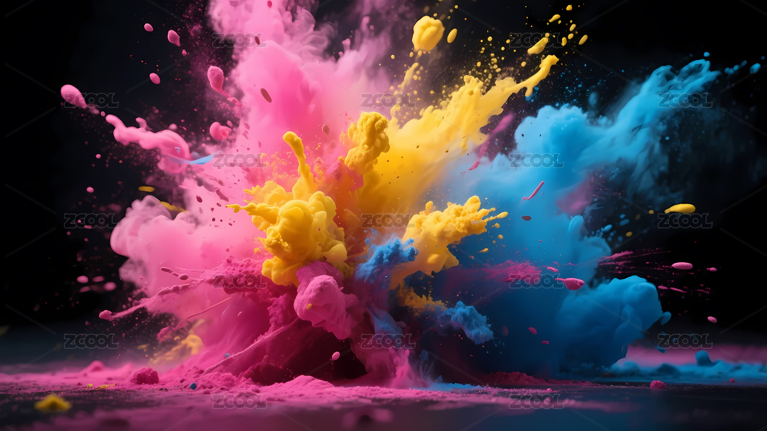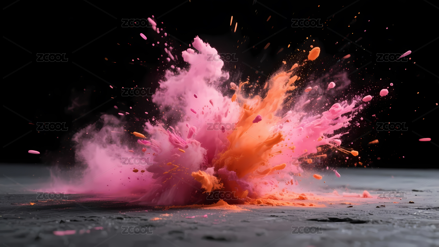 粉末,爆炸,粉色,橙色,视觉,动态,主体,深色,色彩,云团