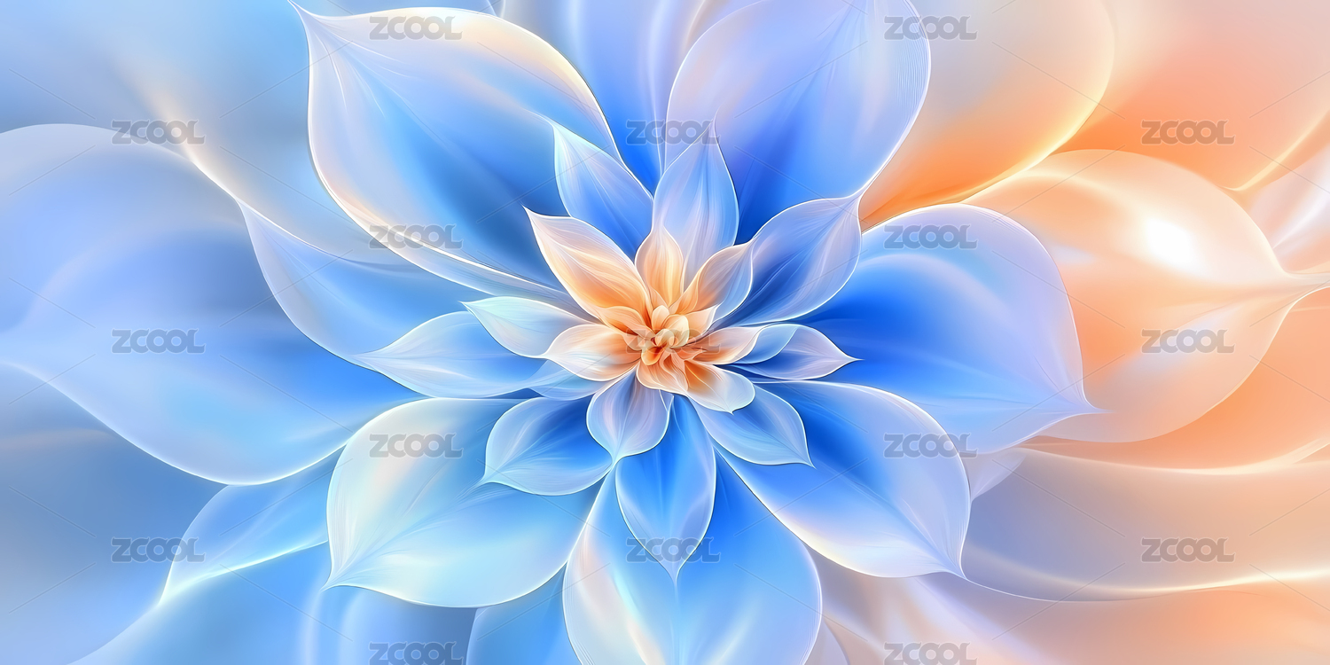蓝色渐变抽象花朵艺术图案