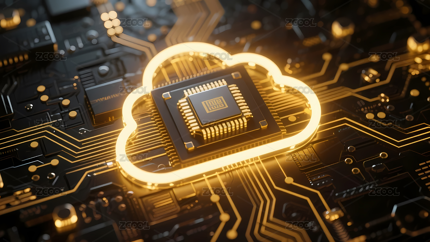 蓝色,发光,电路板,科技,背景,金色,云朵,点,设计,复杂