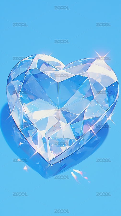 爱心,钻石,宝石,水晶,心形,蓝色,特写,闪耀,梦幻,光泽