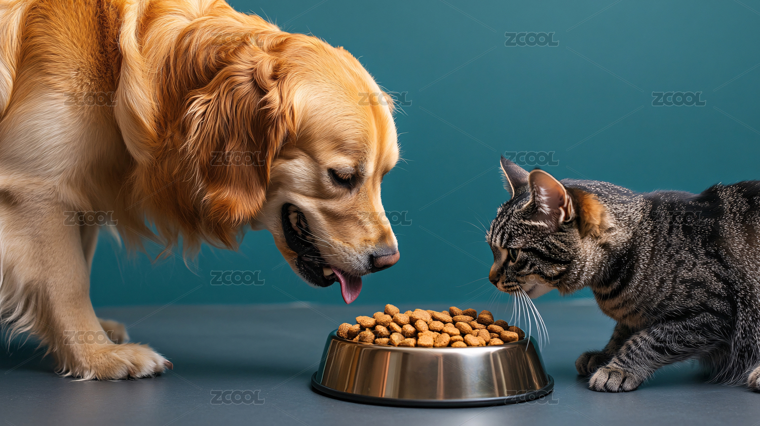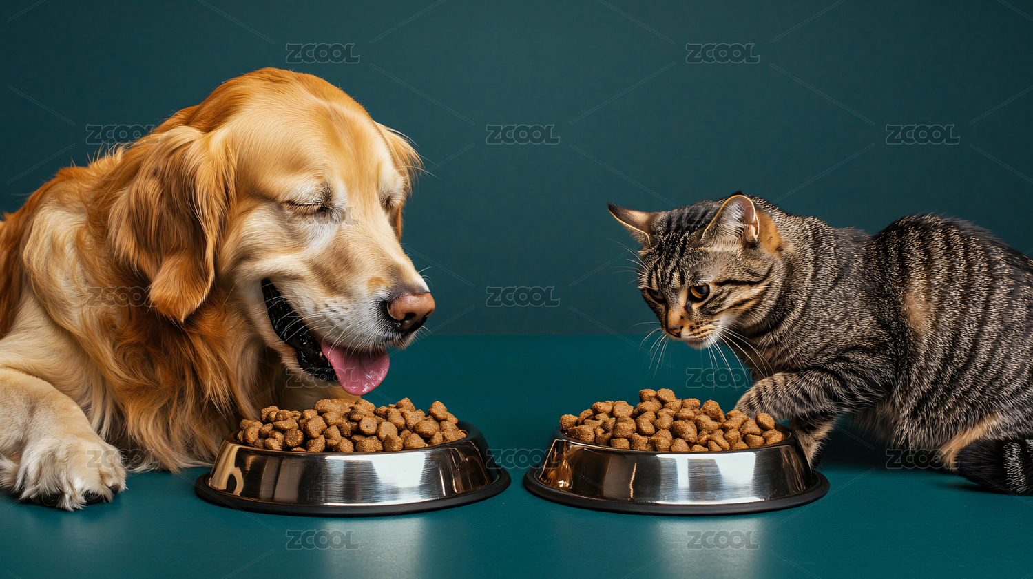 可爱猫咪狗狗吃着猫粮狗粮摄影