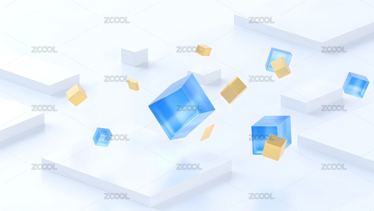 蓝白几何立方体组