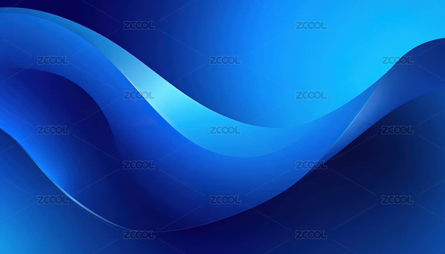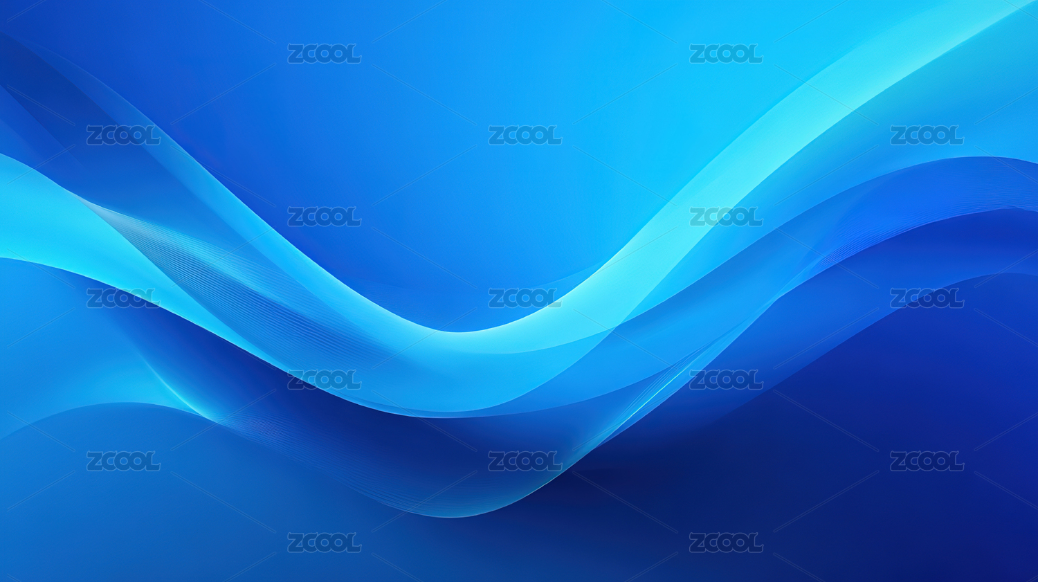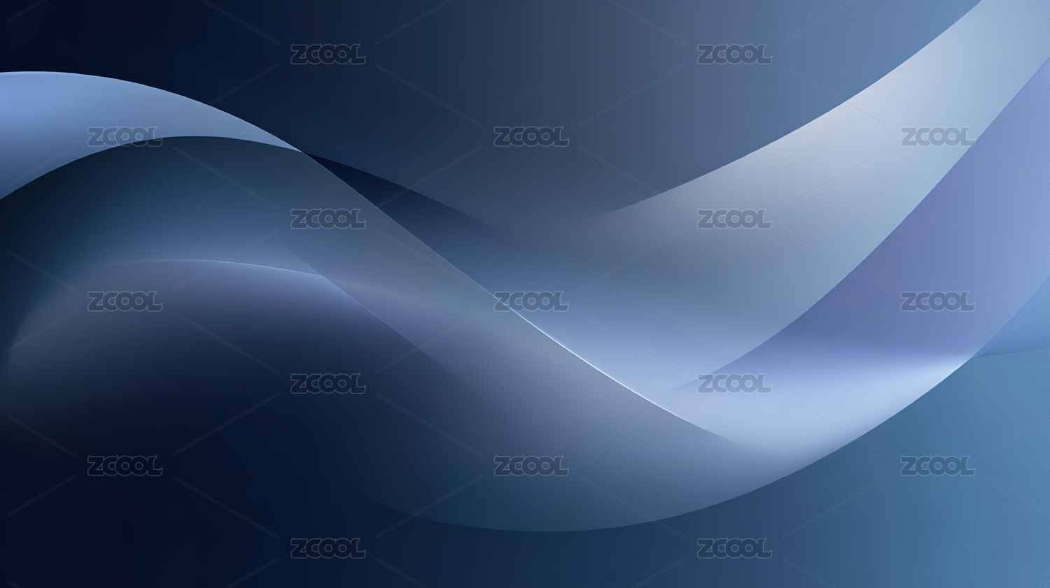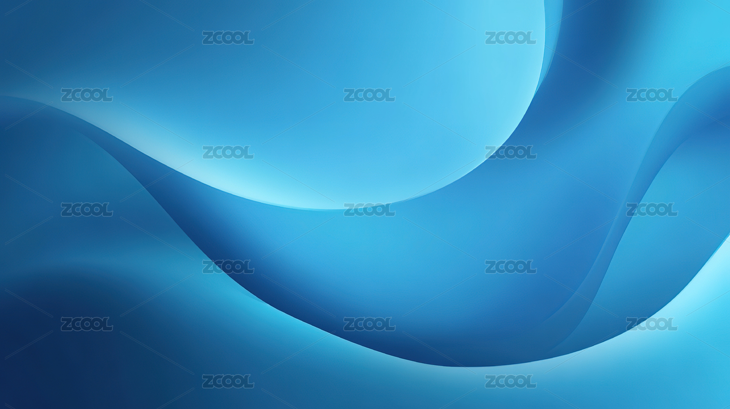 蓝色背景下白色飘带蜿蜒呈现简约治愈的视觉