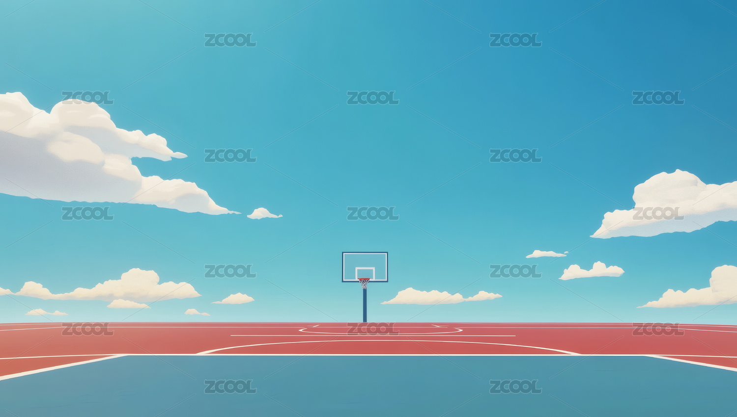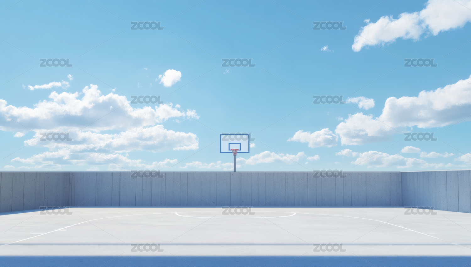 蓝天,白云,运动,空旷,篮球,场地,简约,纯净,宁静,梦想