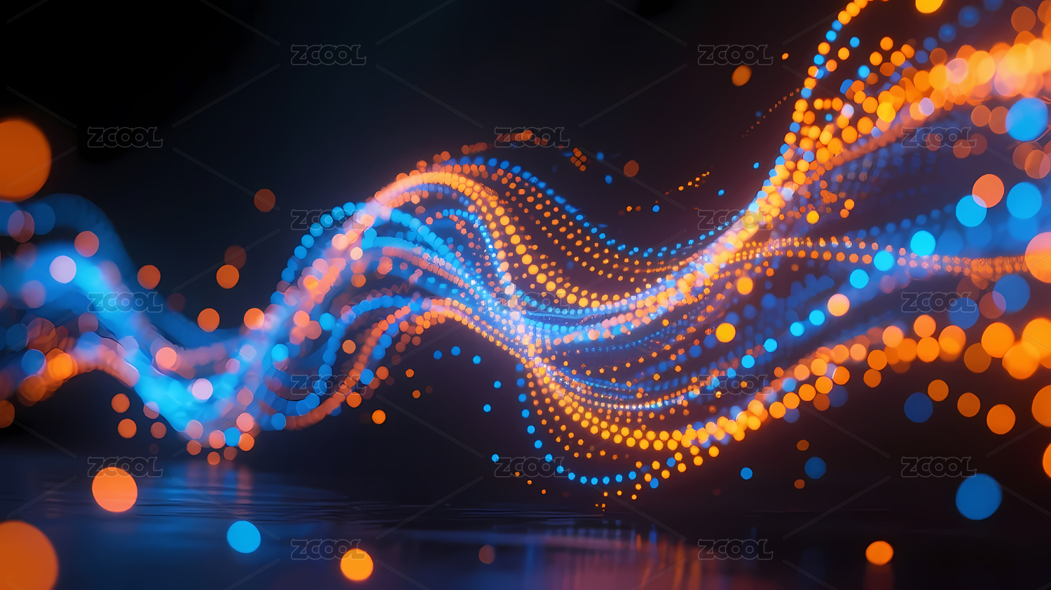 蓝色,橙色,深色,科技,未来,线条,点状,粒子,波浪,动态