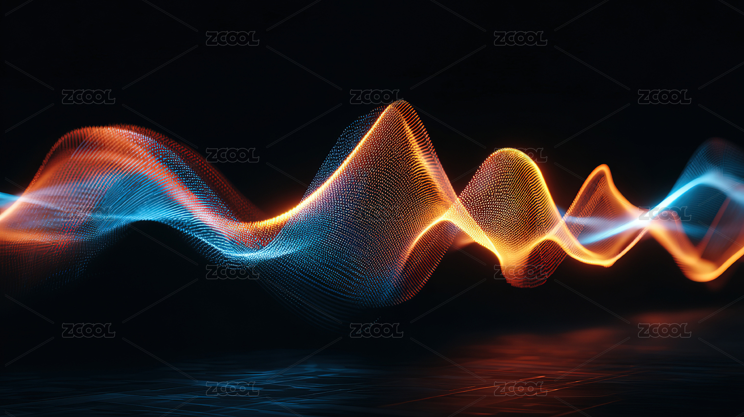 蓝色,橙色,深色,科技,未来,主体,线条,波浪,动态,曲线