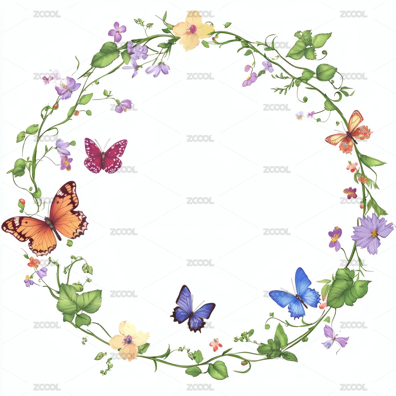 花环围绕蝴蝶飞舞装饰图案
