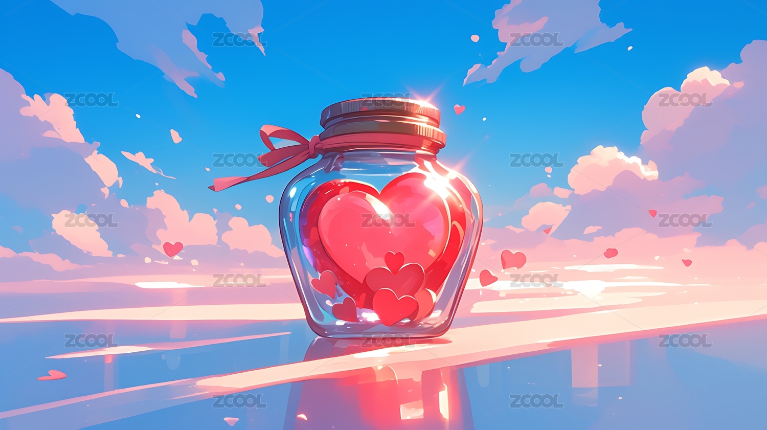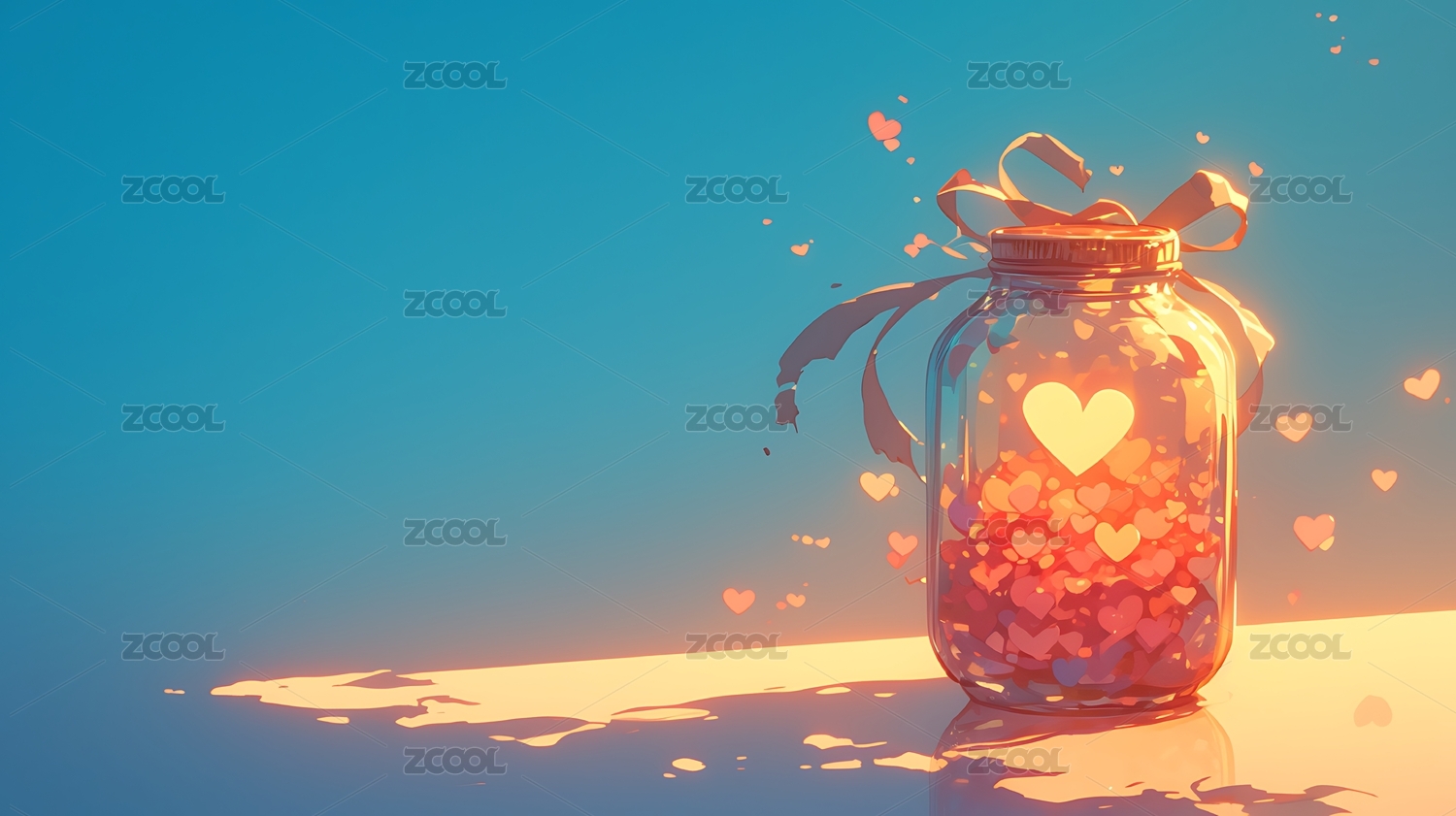 爱心,玻璃罐,浪漫,情人节,粉色爱心,蝴蝶结,甜蜜,可爱,装饰,创意