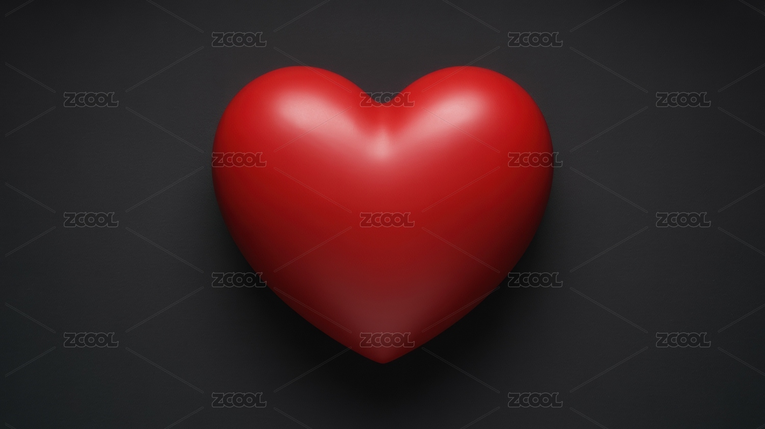 红色爱心,黑暗背景,光影效果,情感表达,浪漫氛围,简洁构图,光滑材质,温暖色调,象征爱情,艺术设计
