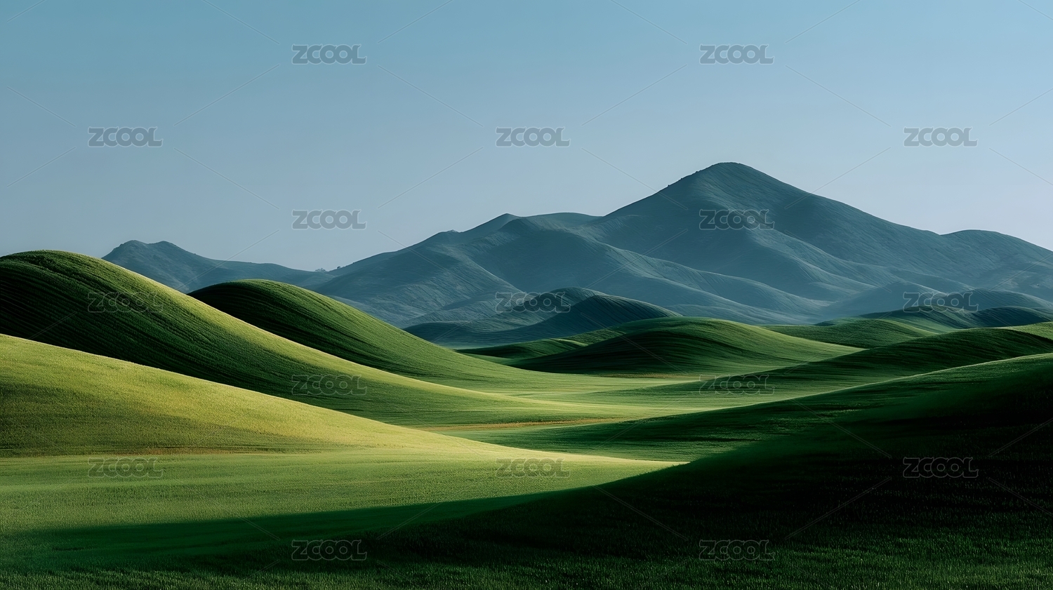绿色丘陵与远山