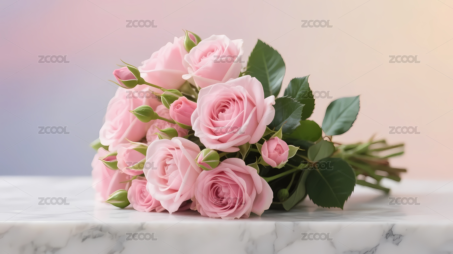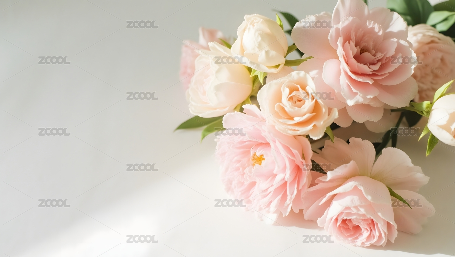 浅粉康乃馨配丝带白背景花艺摄影素材