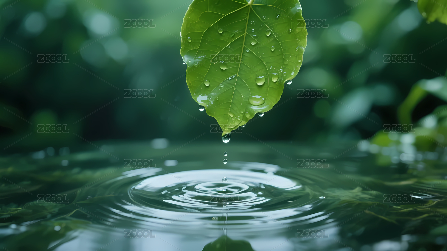 绿色叶子与水珠营造自然氛围