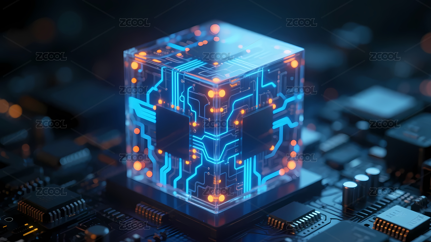 橙色,灯光,电路板,未来,蓝色,立方体,透明,光芒,高科技,物体