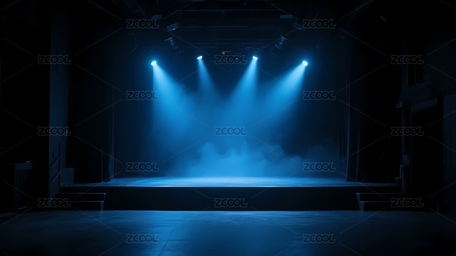 蓝色,视觉,深色,舞台,神秘,室内,聚光灯,氛围,光线,薄雾