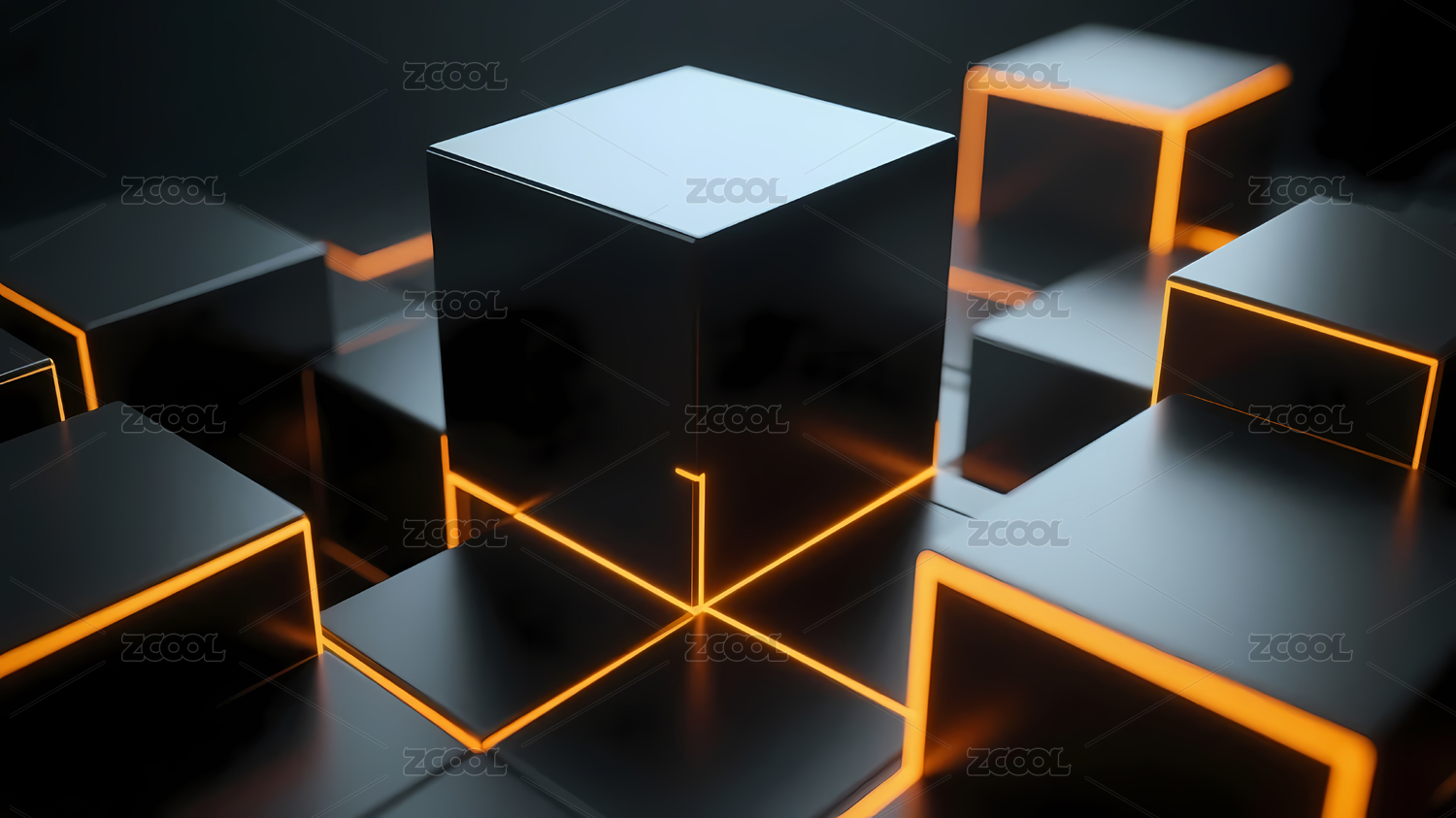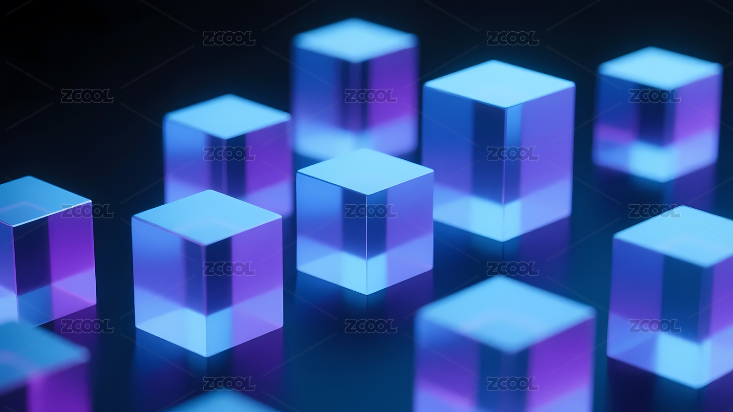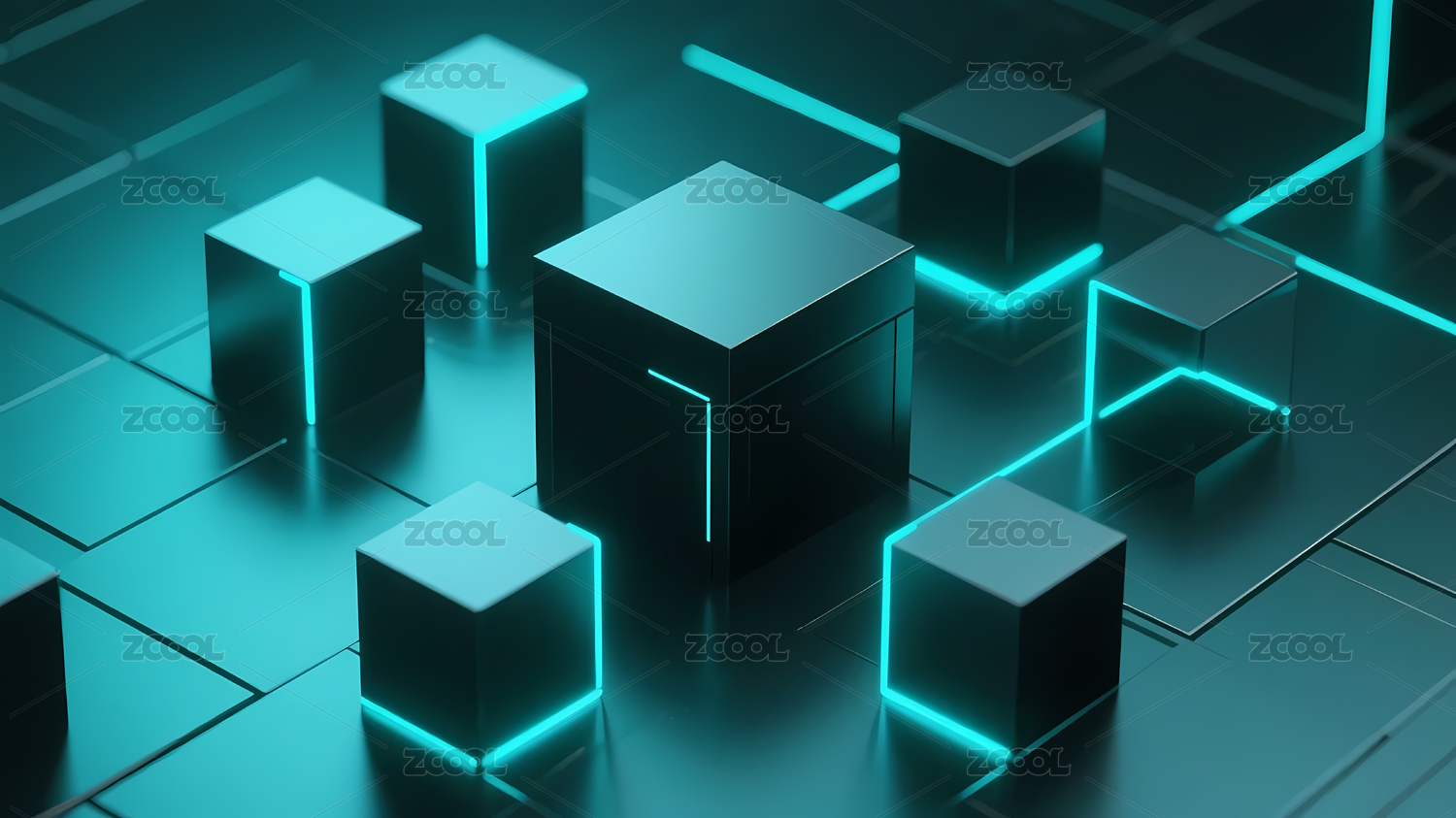 蓝色,发光,科技,深色,几何,形状,立方体,抽象,边缘,光晕