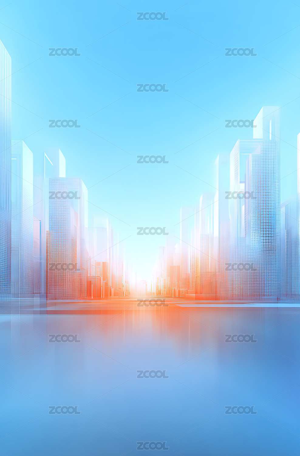 玻璃城市 蓝色 科技 AI 未来 摩天楼