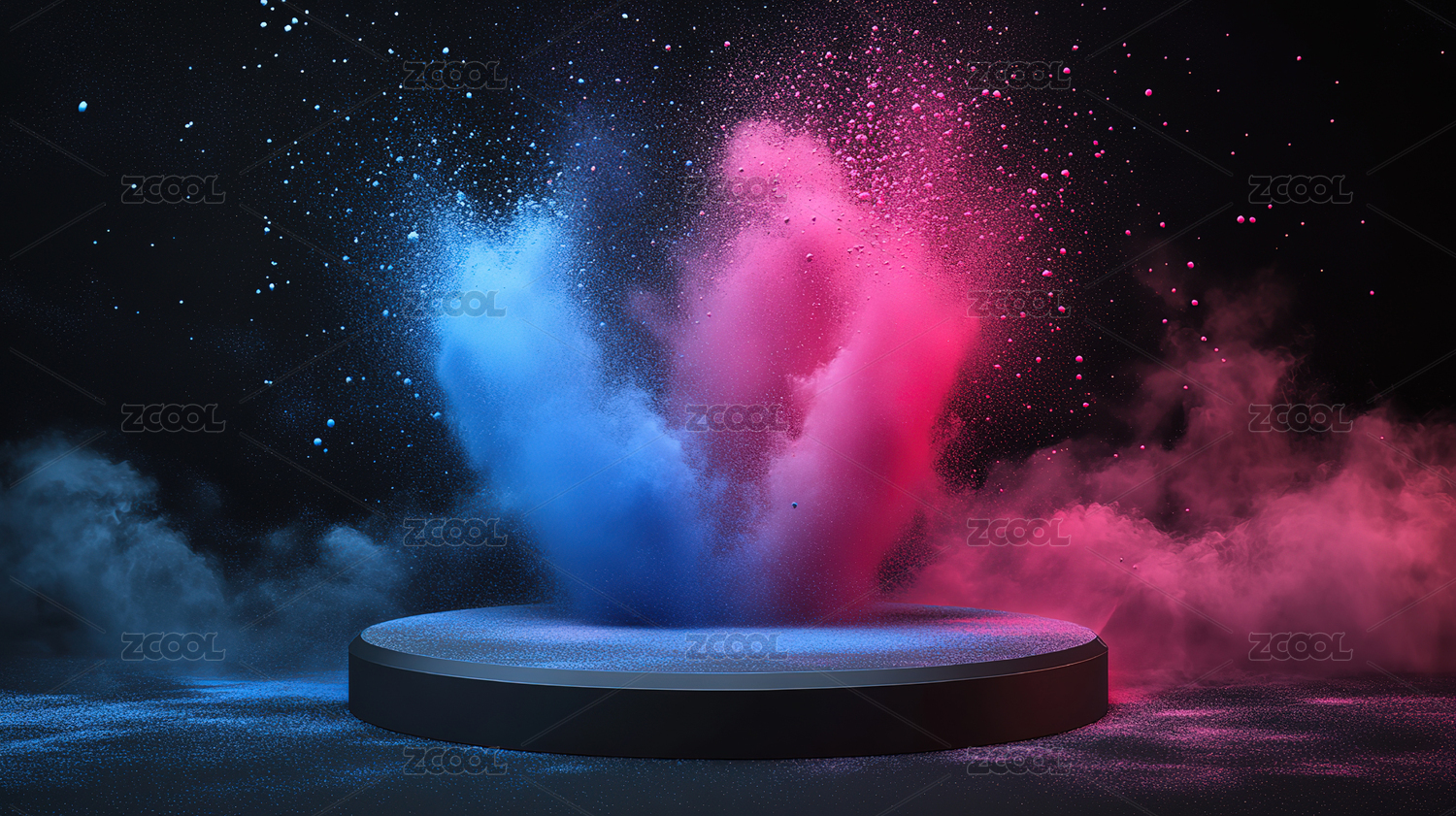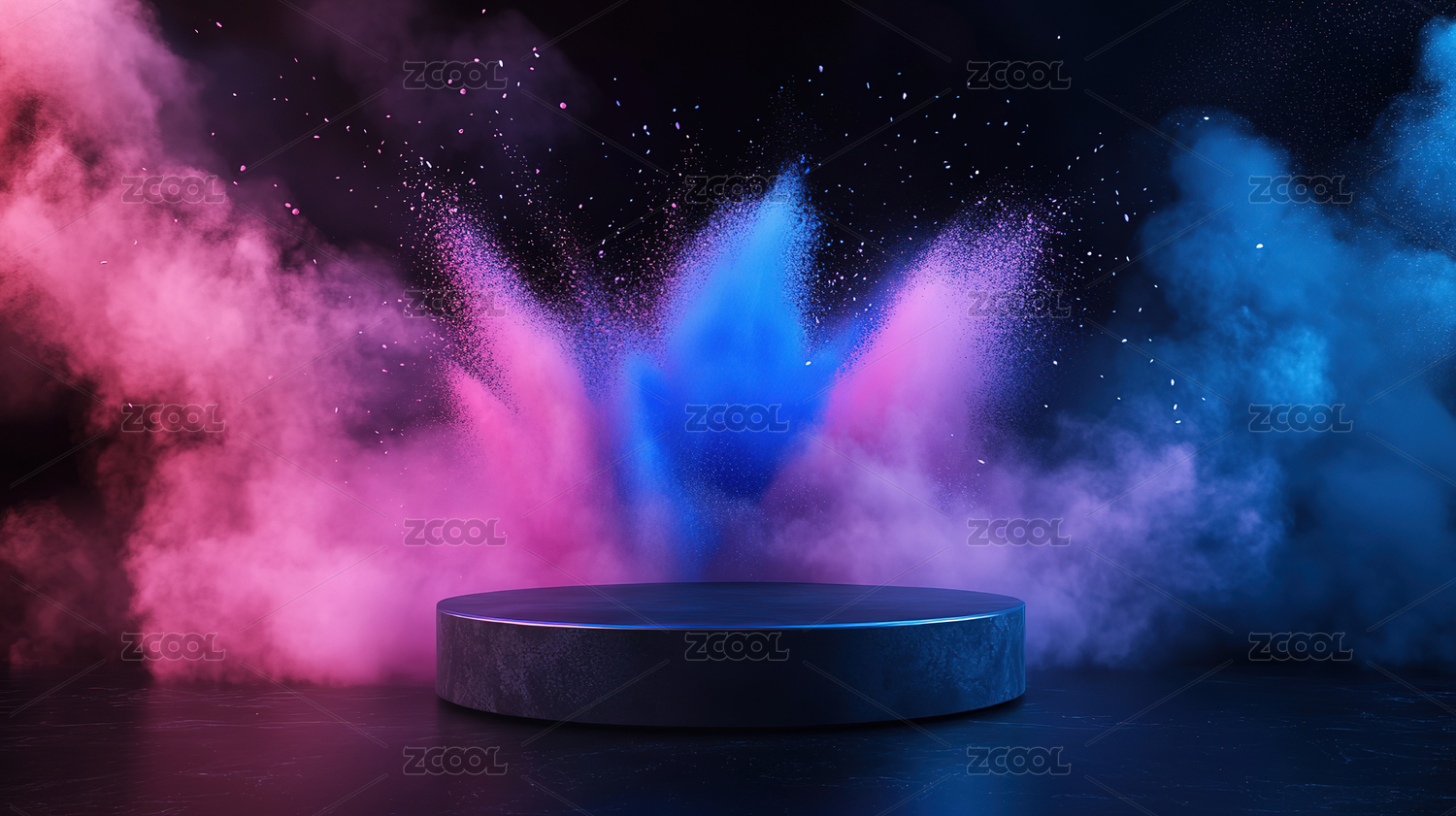 紫色烟雾环绕的圆形展台
