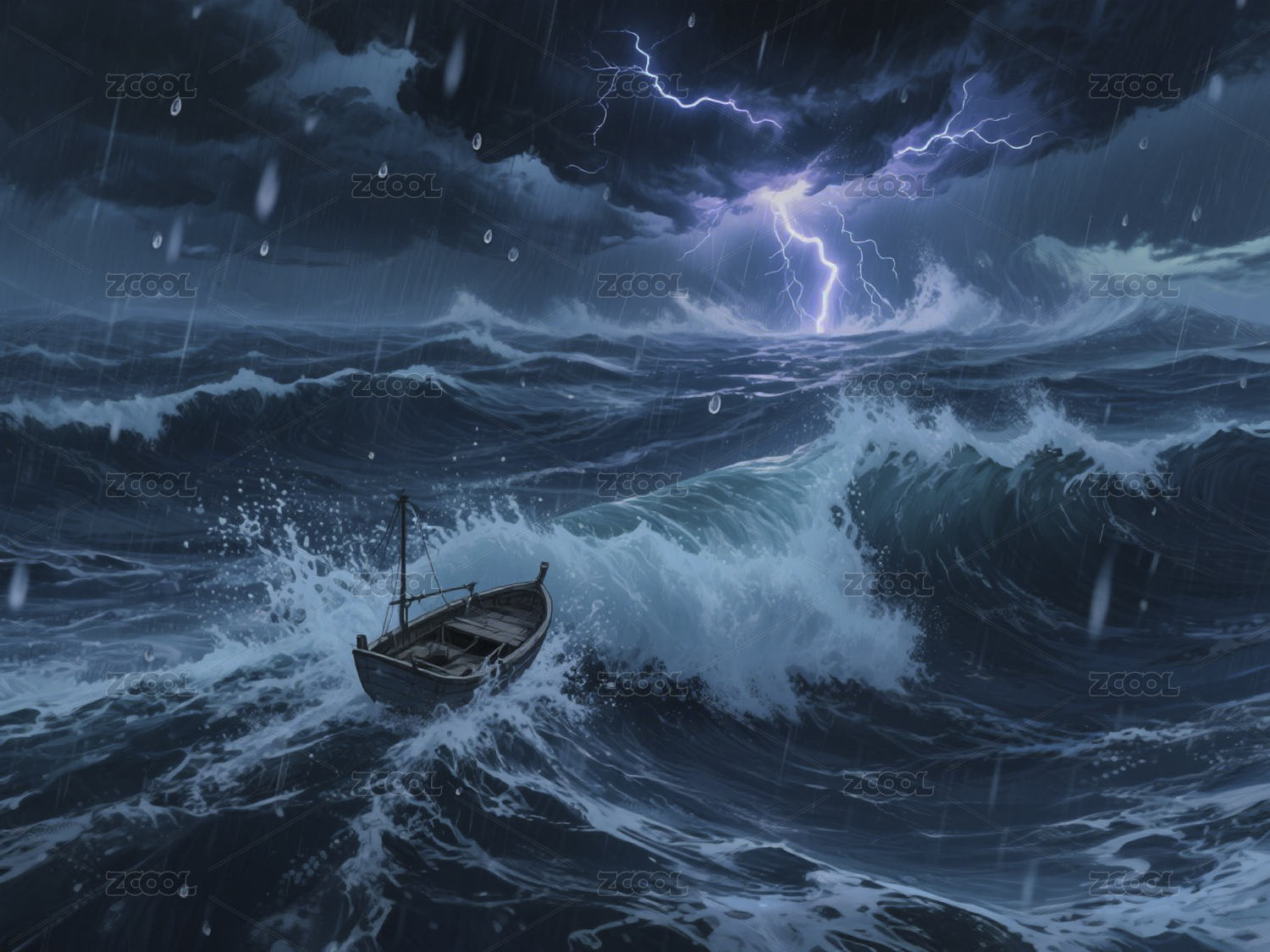巨浪中的勇敢小船