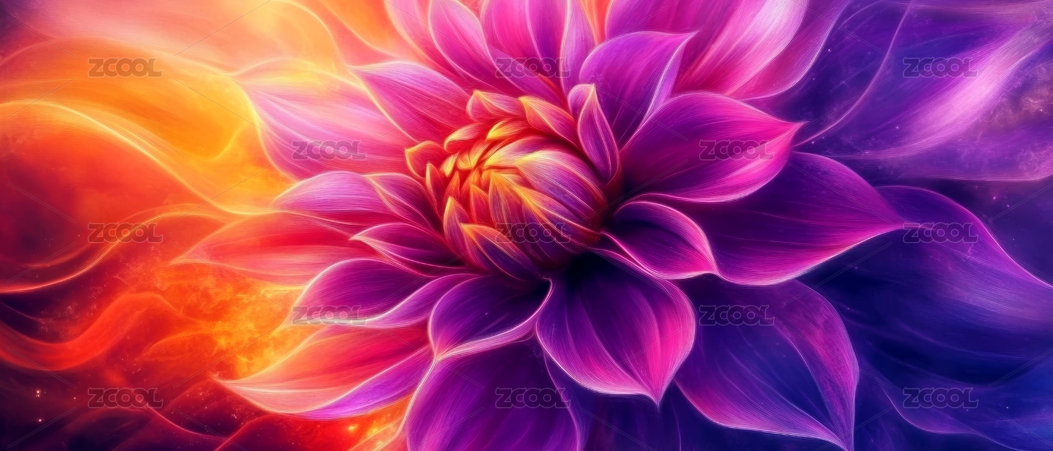 花朵花瓣绽放科技背景抽象数字艺术插画